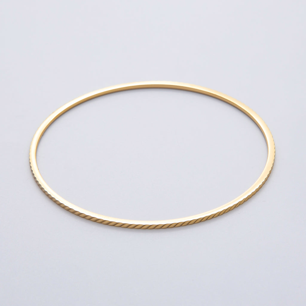 18K Gold Filled 1.5mm Thin Wavy Ribbed Bangle Bracelet | WA-1413