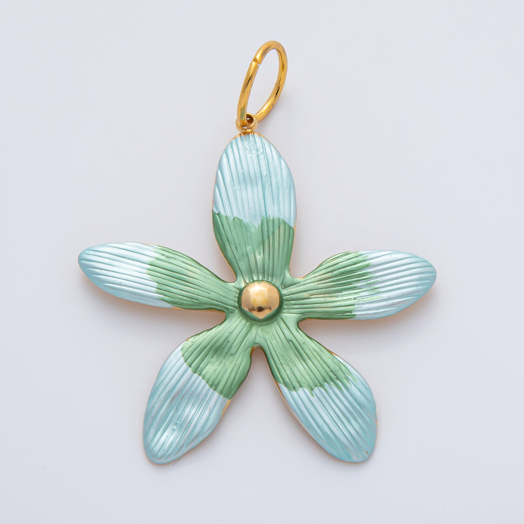 18K Gold Plated 41mm Handpainted Black, Green, Pink Enamel Fresh Flower Charm | AF1424 AF1425