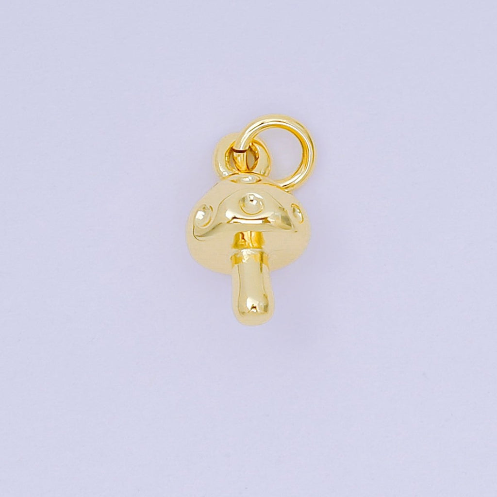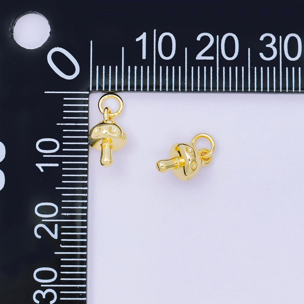24K Gold Filled 10mm Tiny Forest Mushroom Multidimensional 3D Charm | AH-683