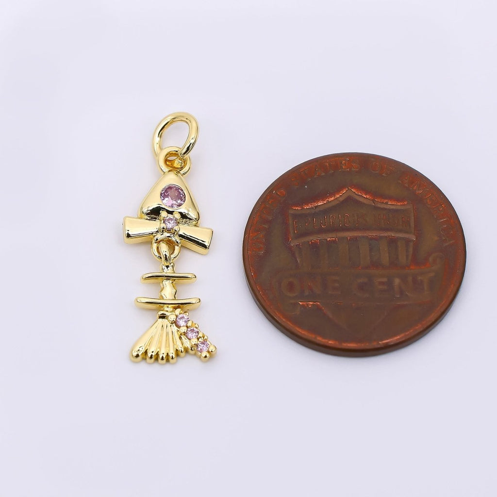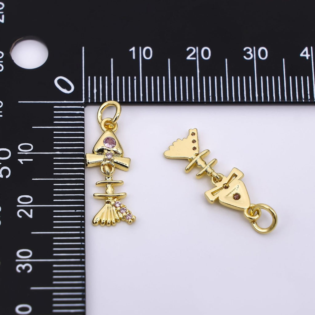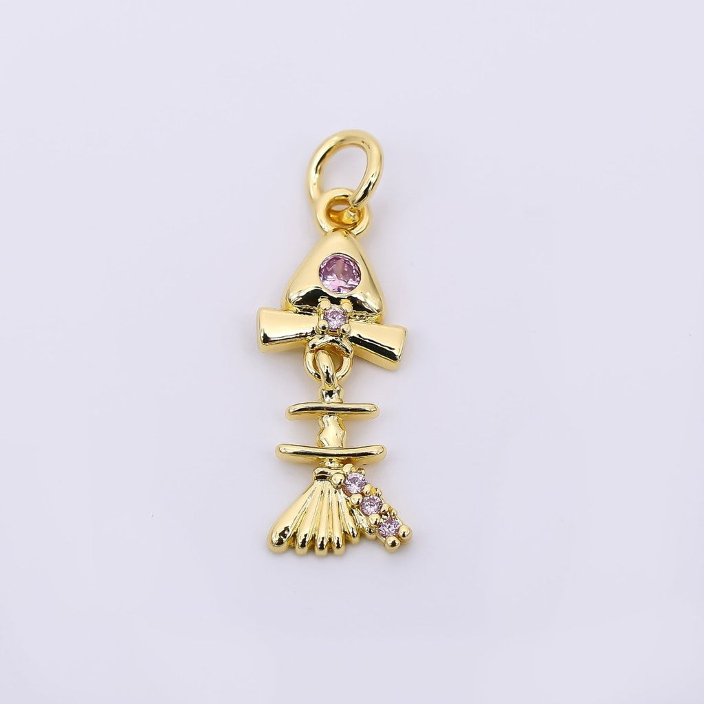 24K Gold Filled 11mm Pink Micro Paved CZ Fishbone Animal Charm | AH-577