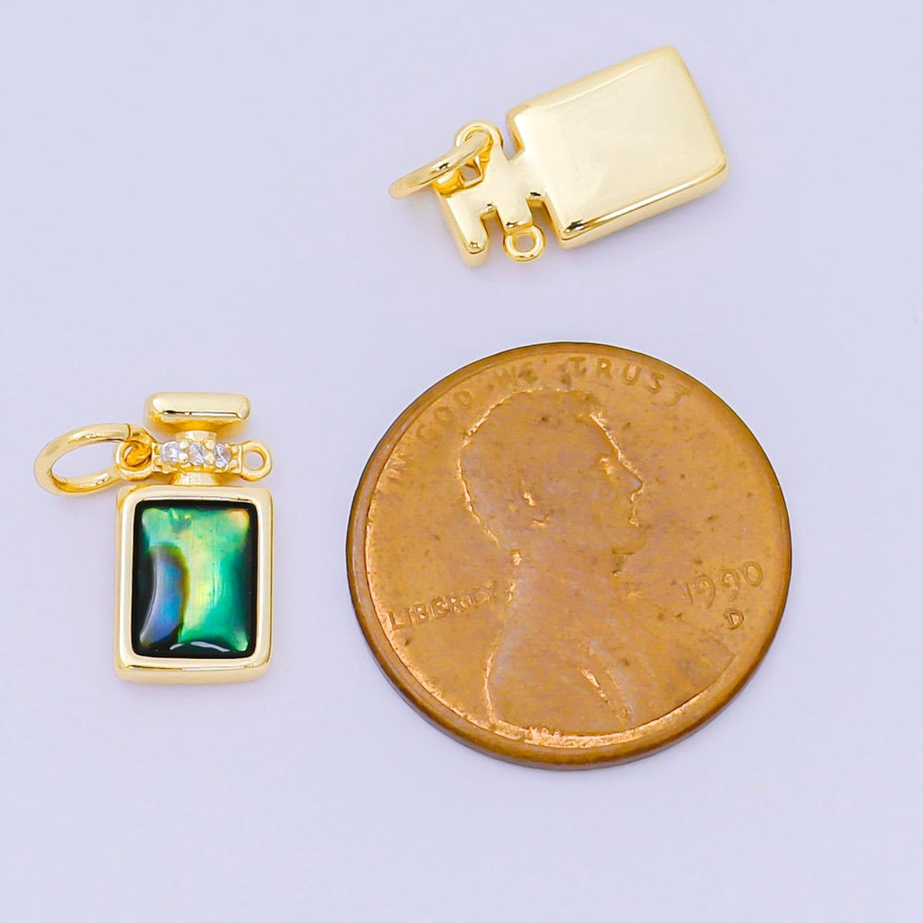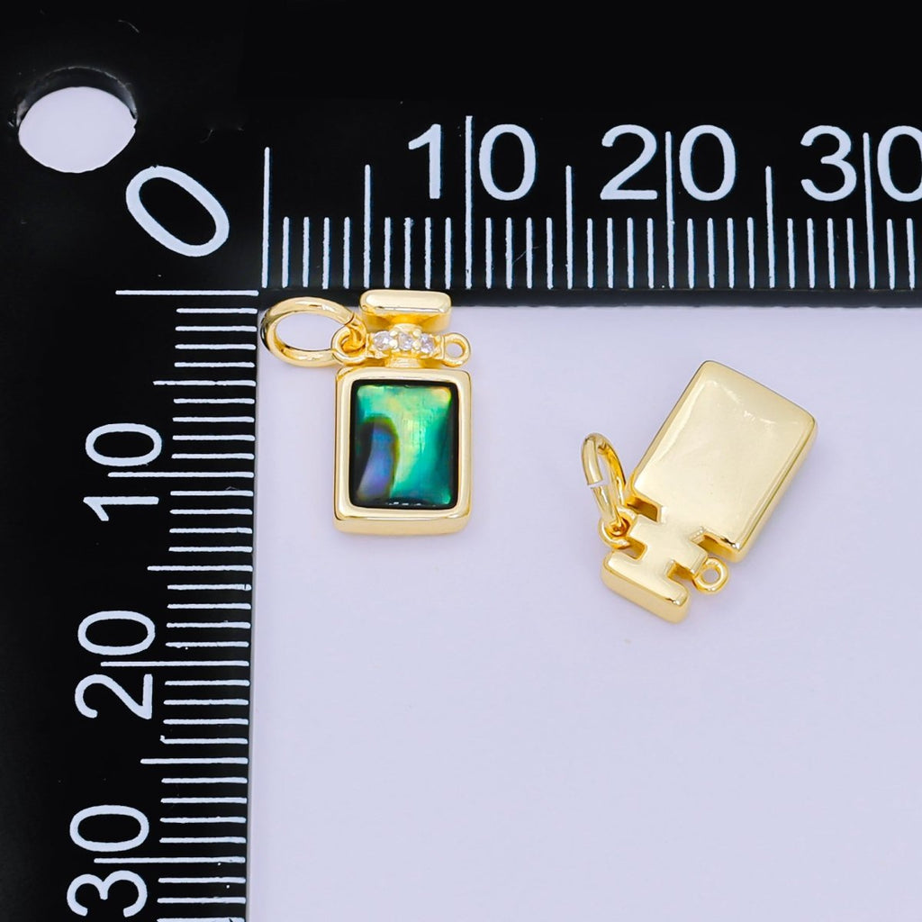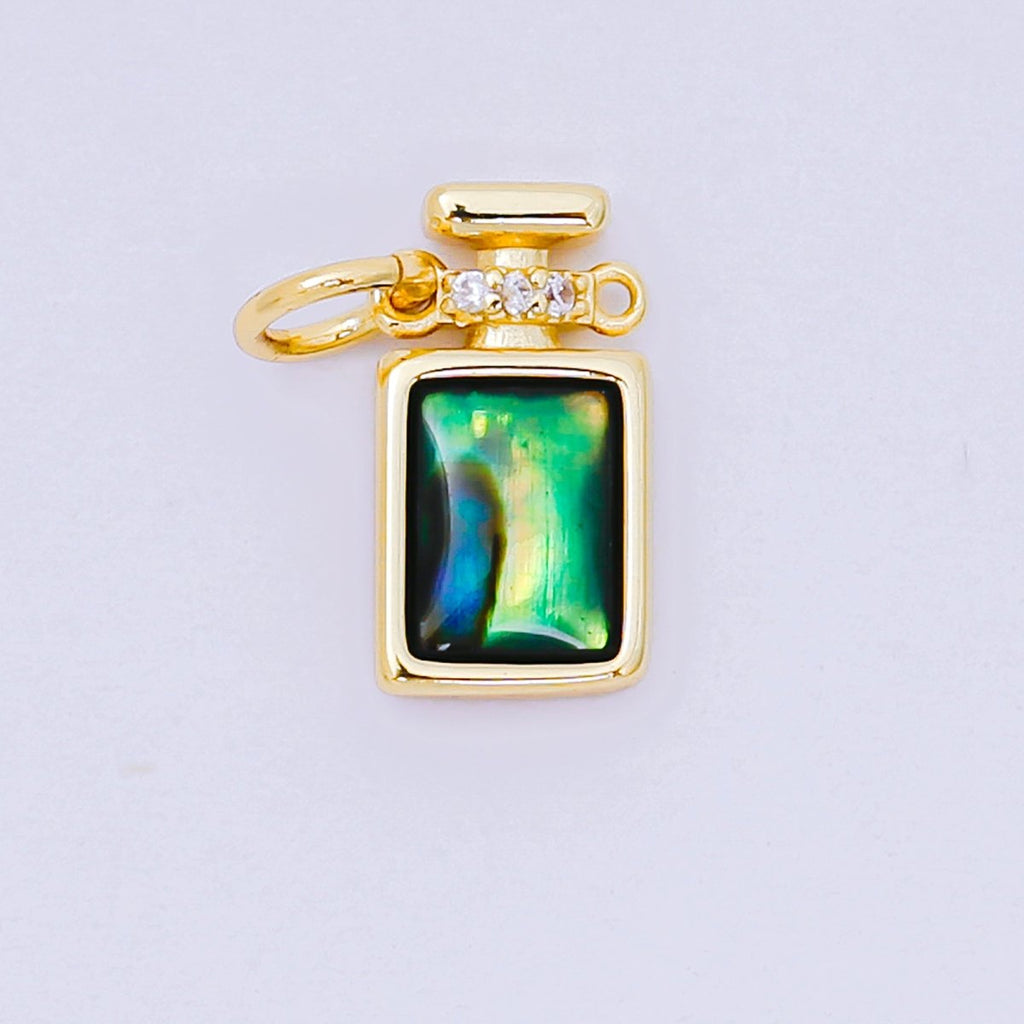 24K Gold Filled 12mm Green Abalone Dainty Flusk Perfume Bottle Charm | M-244