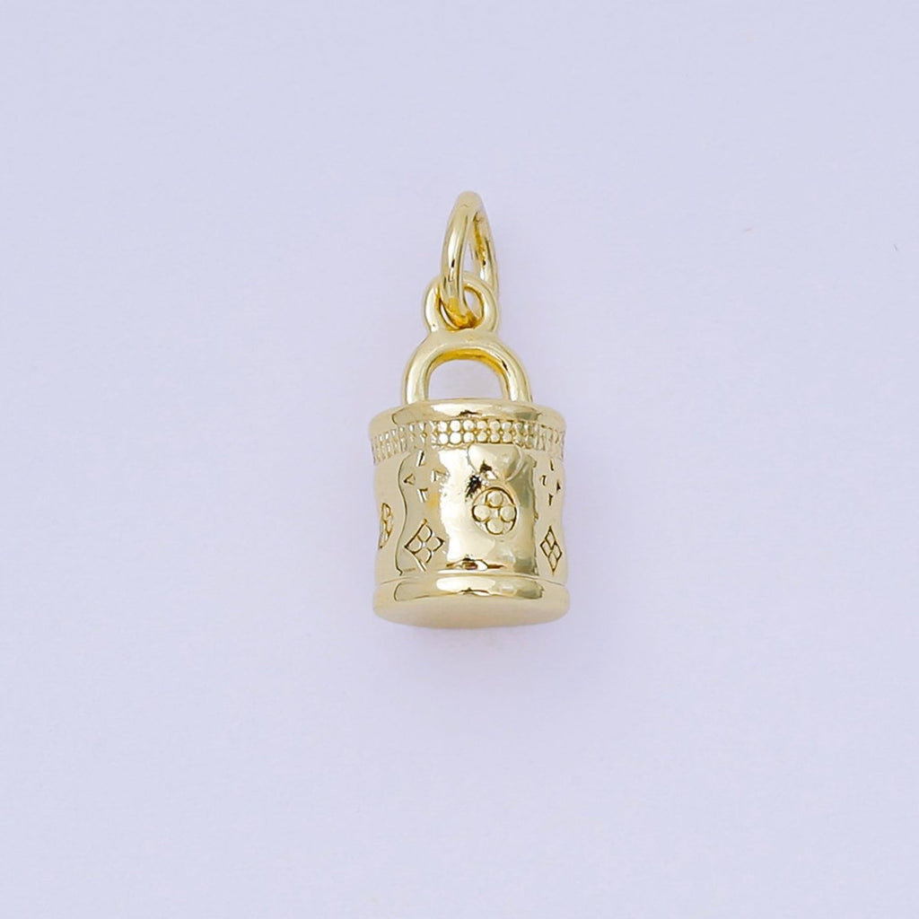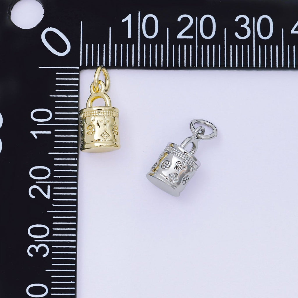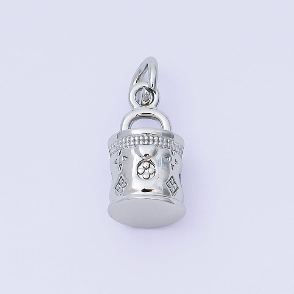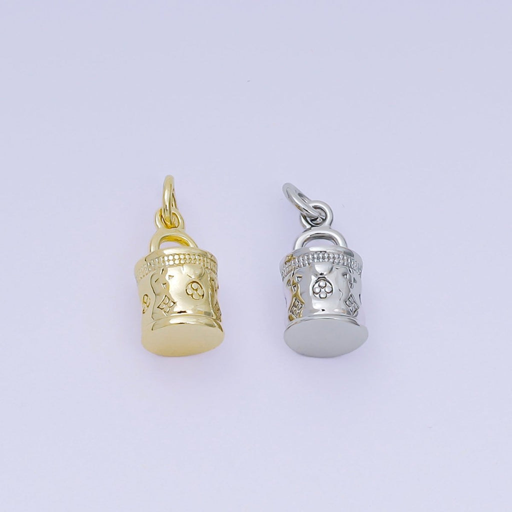 24K Gold Filled 12mm Tube Floral Handy Bag Charm in Gold & Silver | AH-611