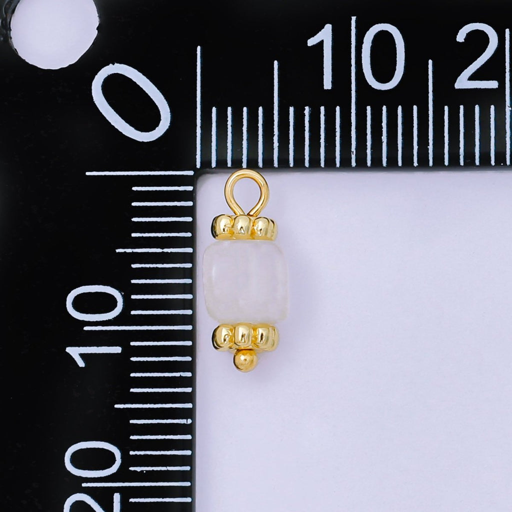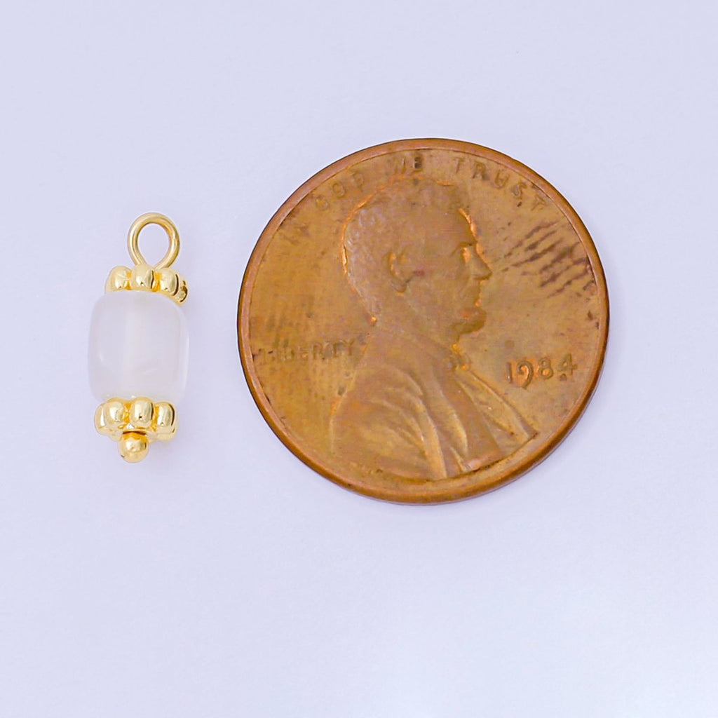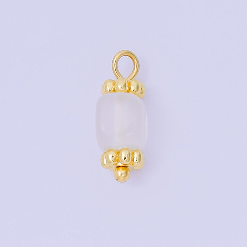 24K Gold Filled 12mm White Acrylic Art Barrel Bead Crown Charm | AH-664