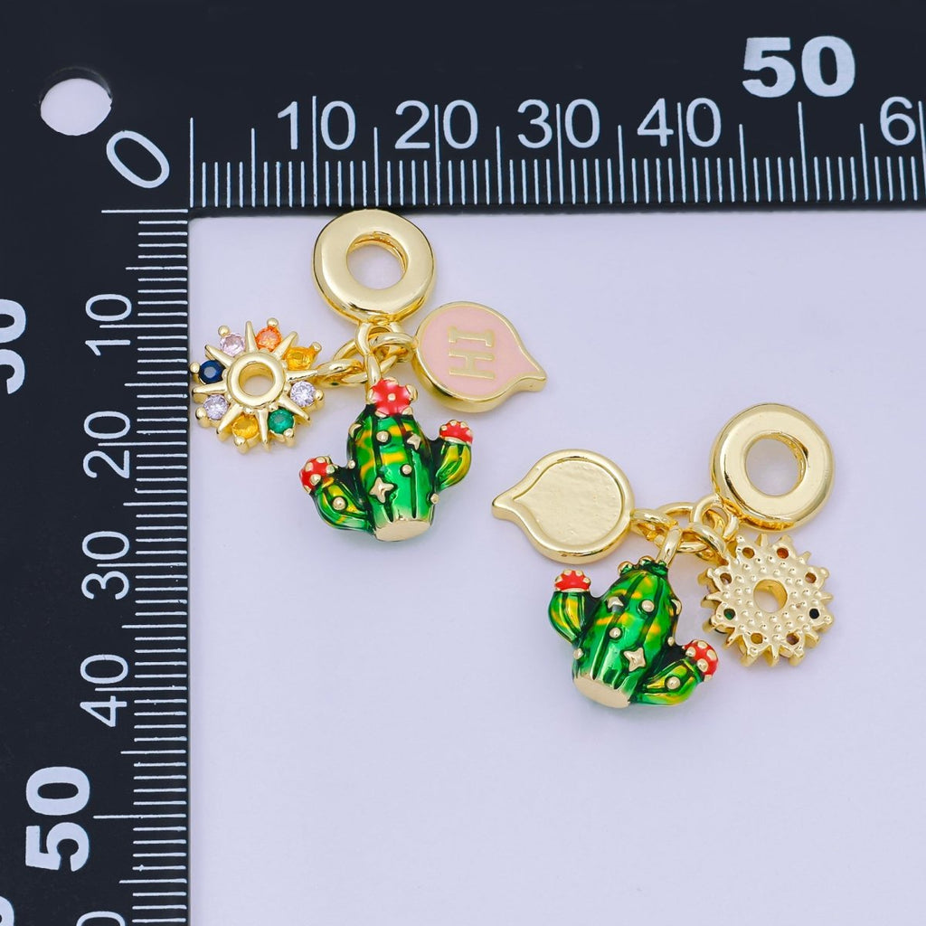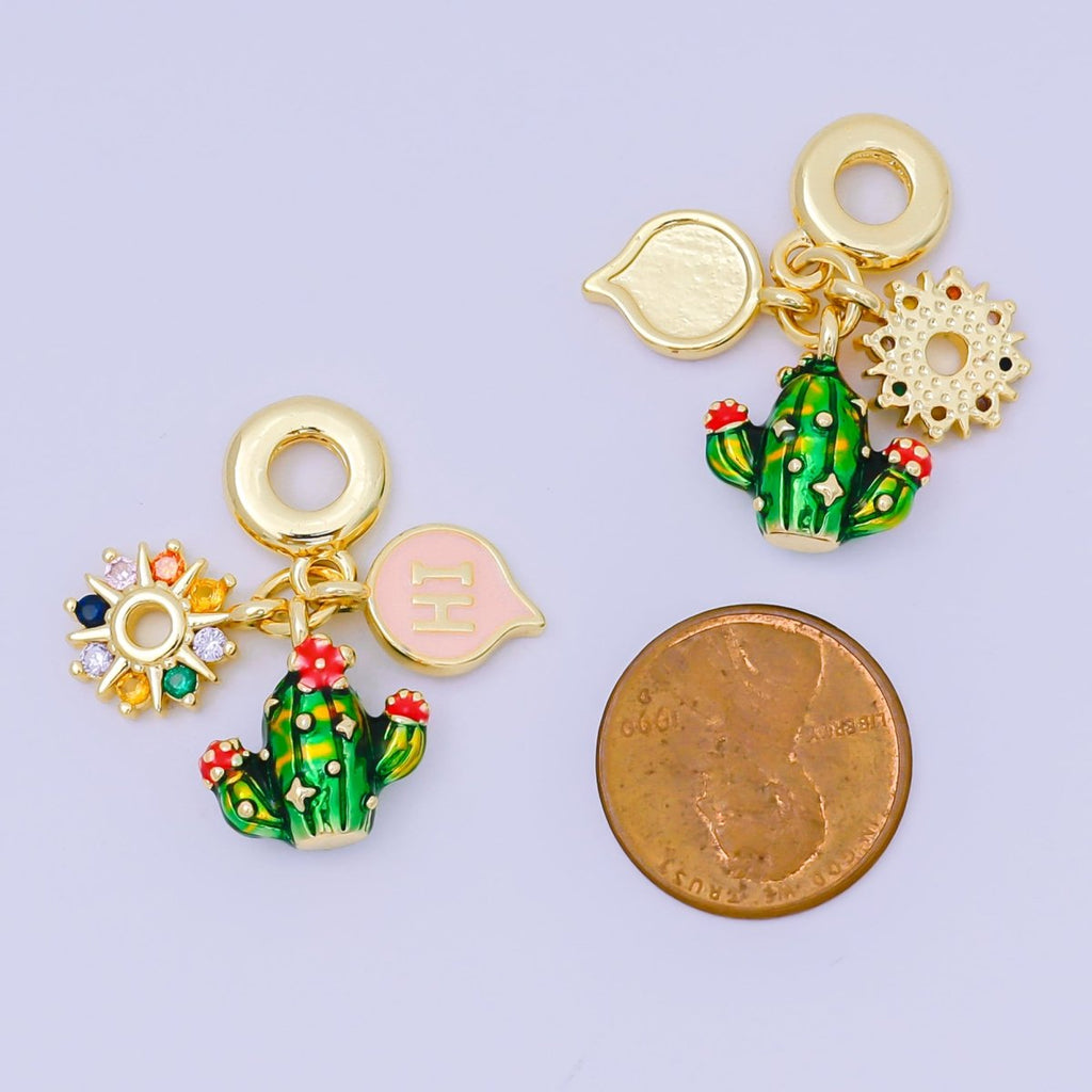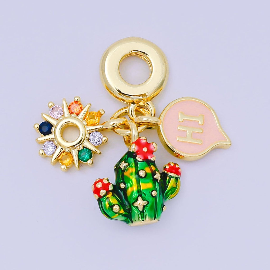 24K Gold Filled 13.5mm Multicolor CZ Enamel Art Desert Theme Charm in Cactus, Sun, & Hi Rhondelle Drop Pendant | M-098