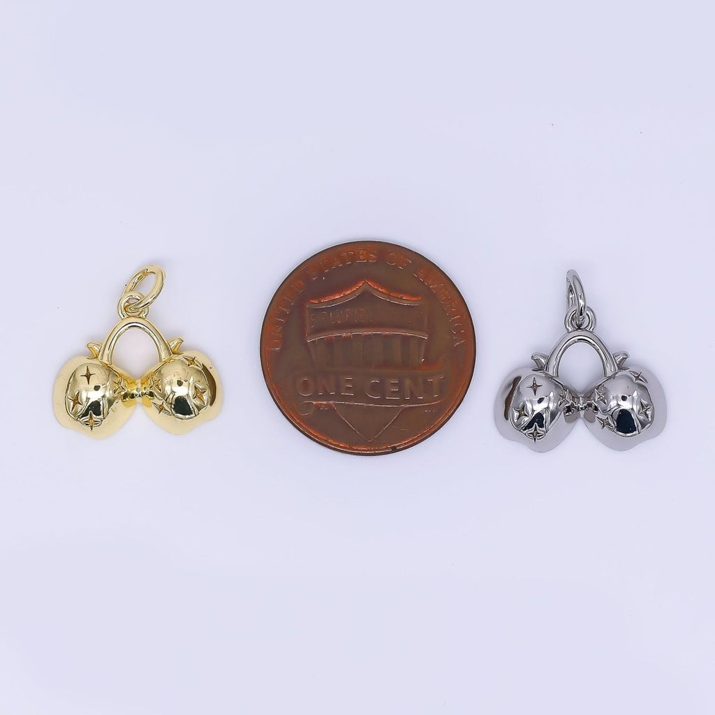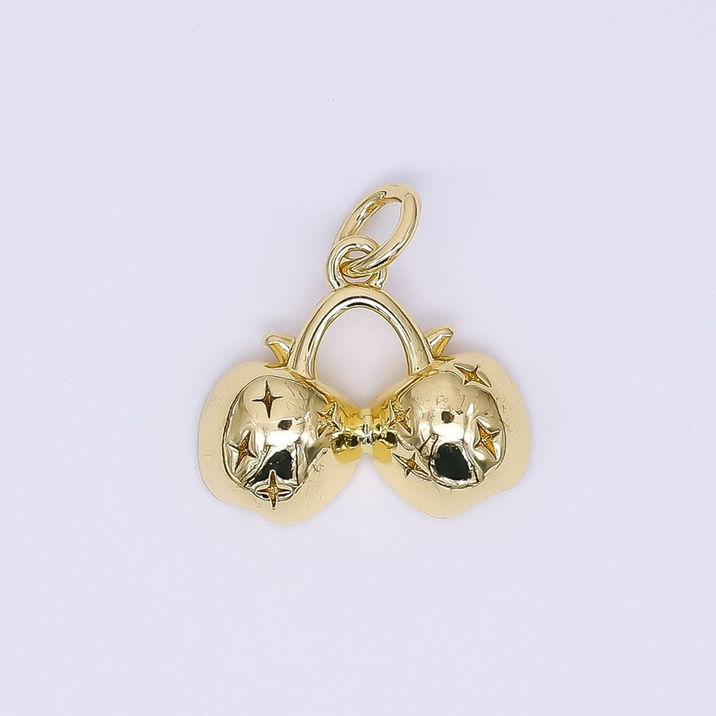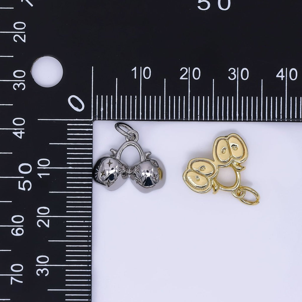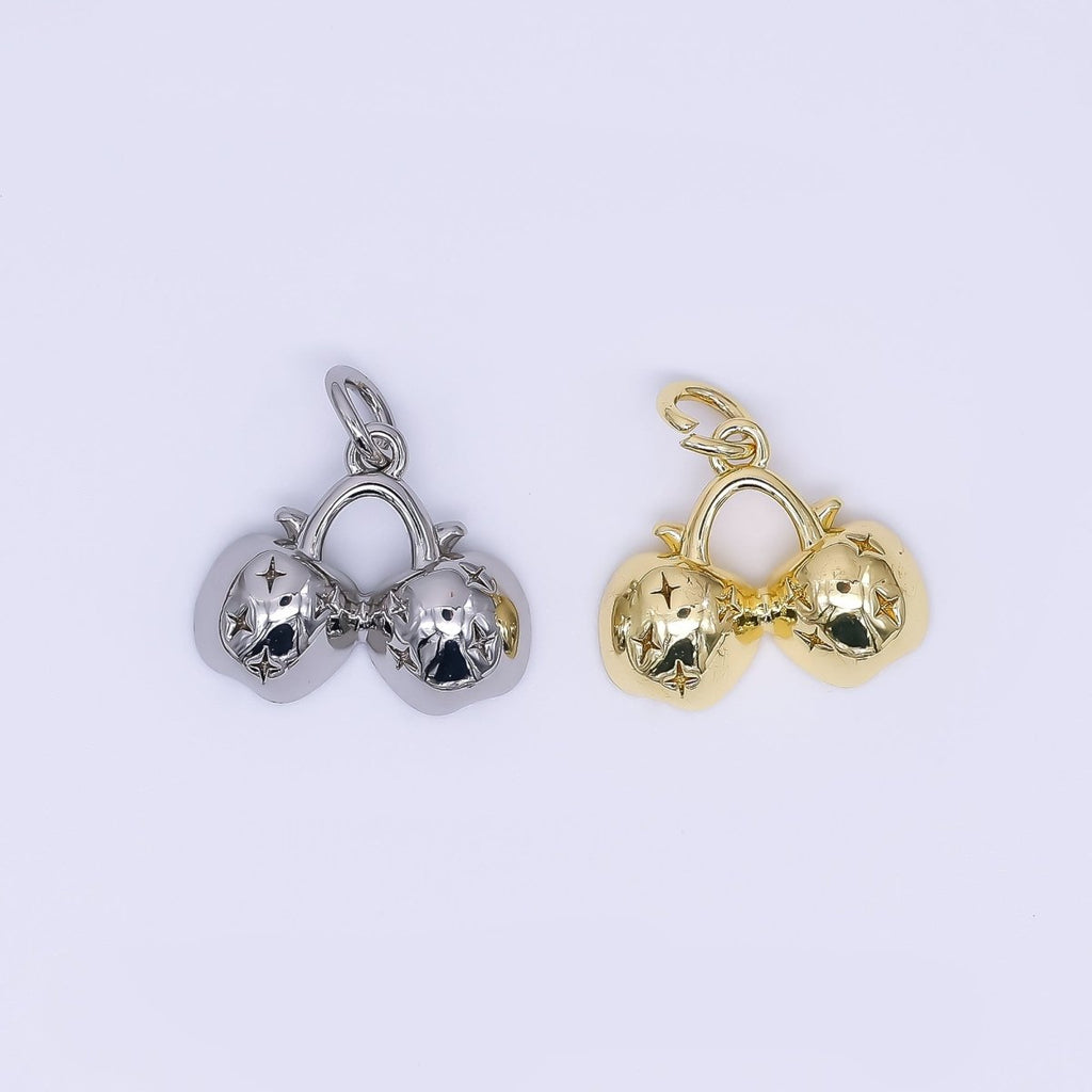 24K Gold Filled 13mm Apple Twin Fruit Charm in Gold & Silver | AH-553