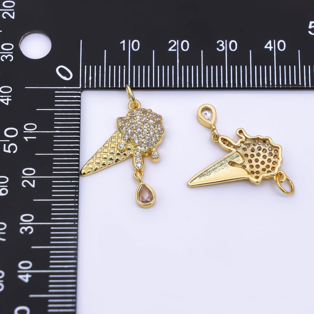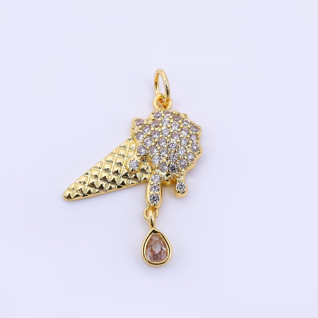 24K Gold Filled 13mm Micro Paved & Brown Teardrop CZ Melting Ice Cream Drop Charm | AF-513