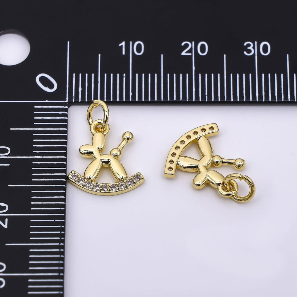 24K Gold Filled 13mm Micro Paved CZ Cute Balloon Dog Charm | AH-578