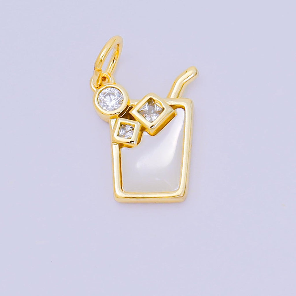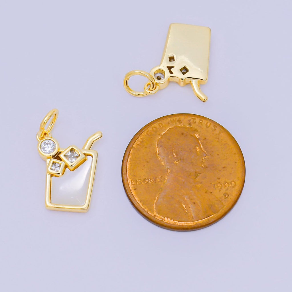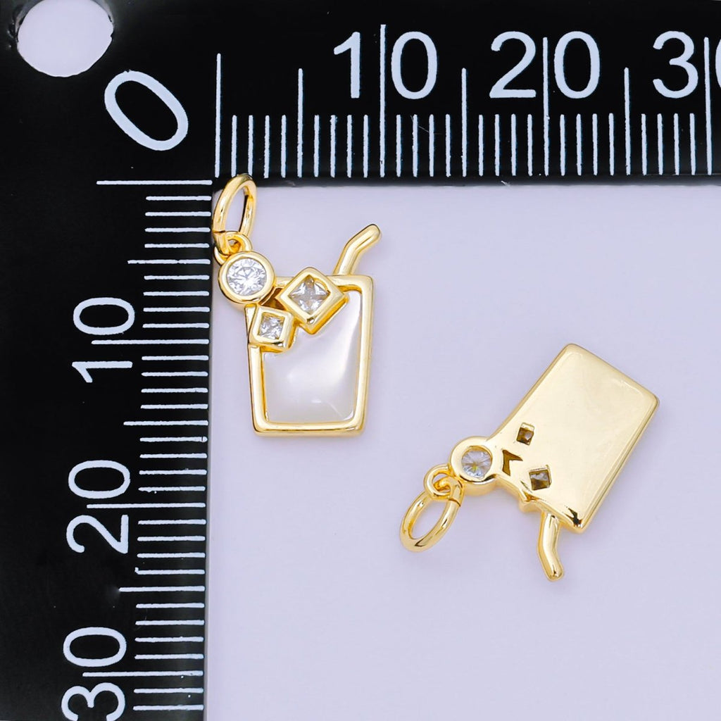 24K Gold Filled 13mm Round & Square CZ Mother of Pearl Summer Ice Drink Charm | M-214