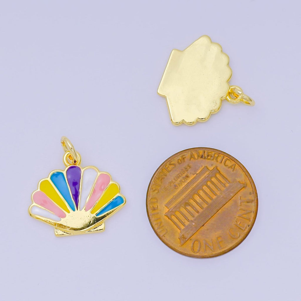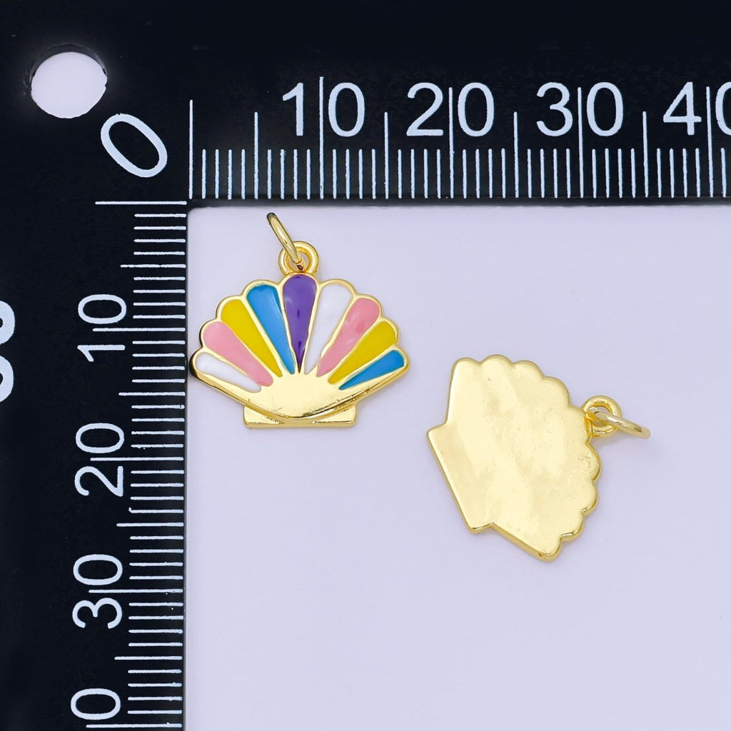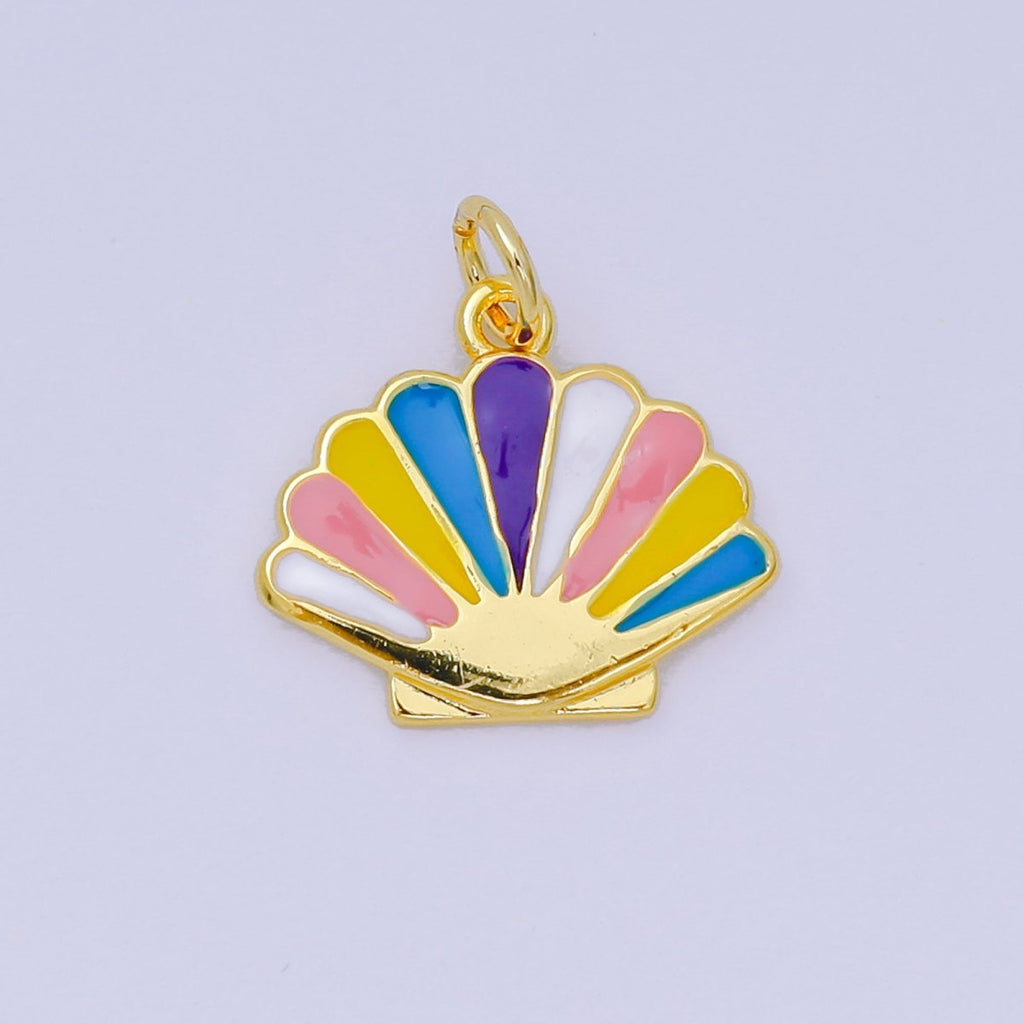 24K Gold Filled 14mm Colorful Enamel Art Rainbow Clam Shell Sea Animal Charm | AH-606