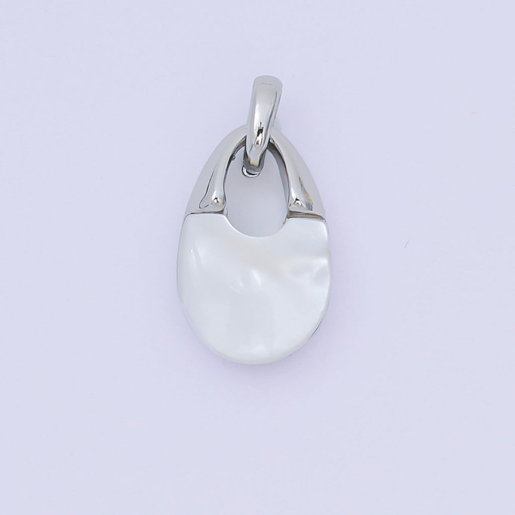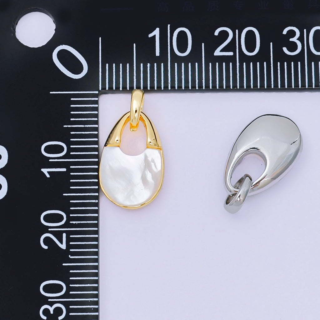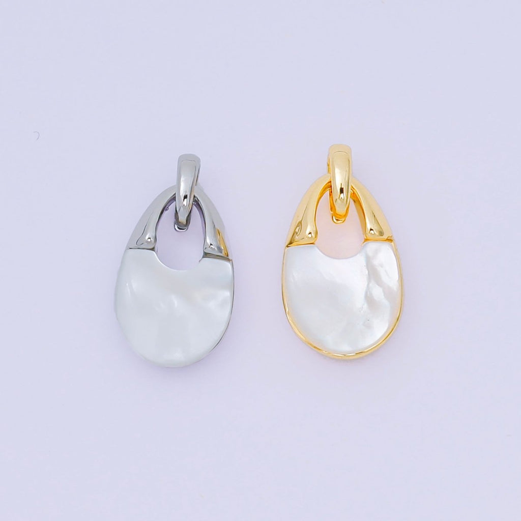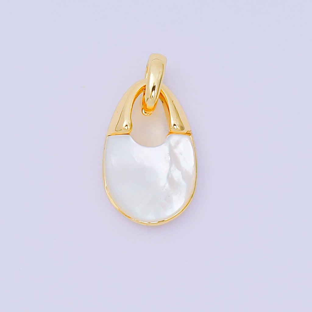 24K Gold Filled 14mm Shell Pearl Mini Padlock Charm Abstract Pendant in Gold & Silver | AA-1582