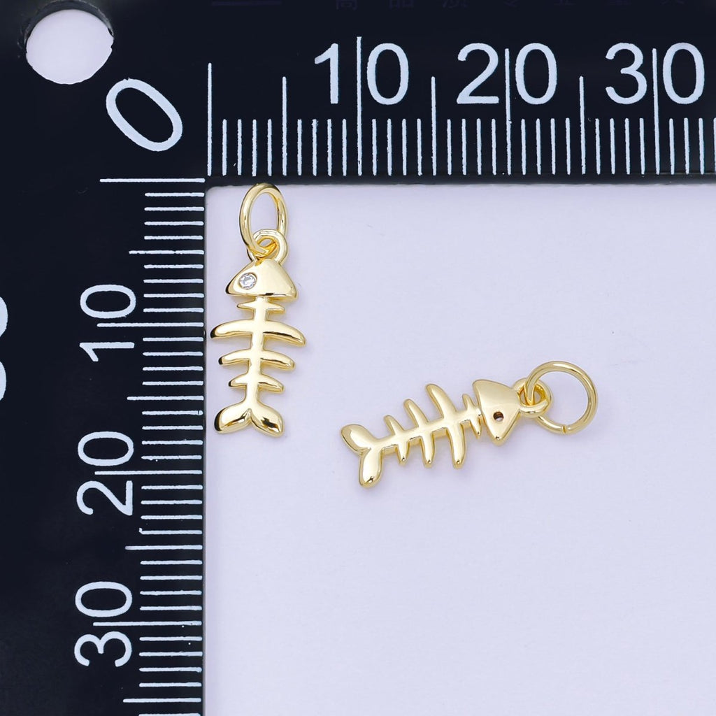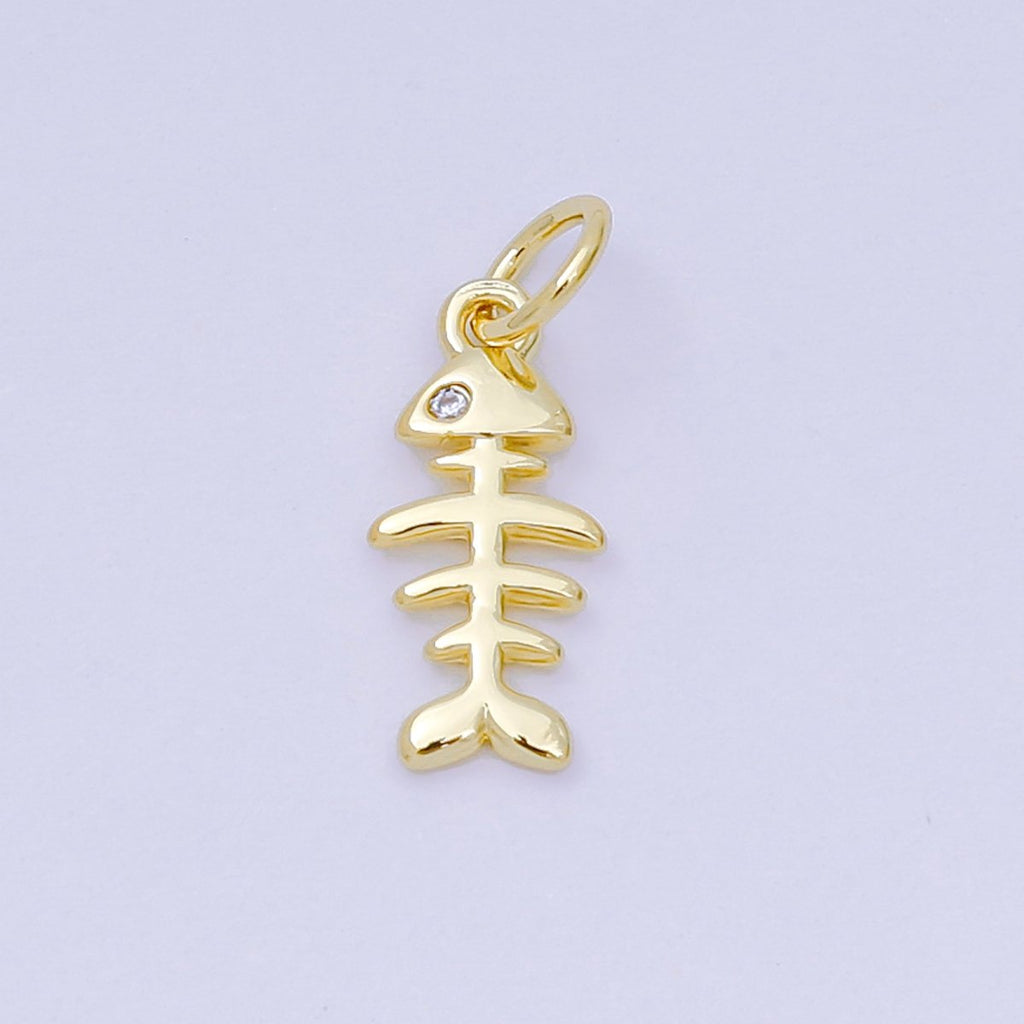 24K Gold Filled 14mm Round CZ Fishbone Minimalist Charm | D102