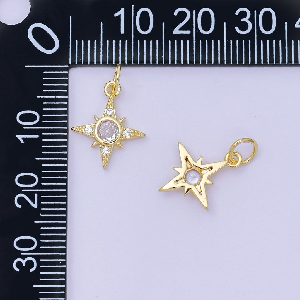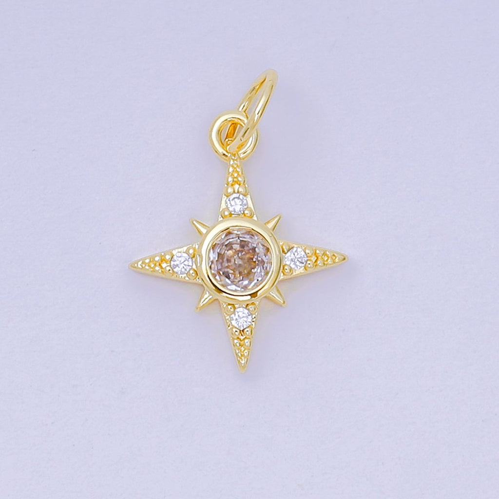 24K Gold Filled 14mm Round CZ North Celestial Star Charm | AH684