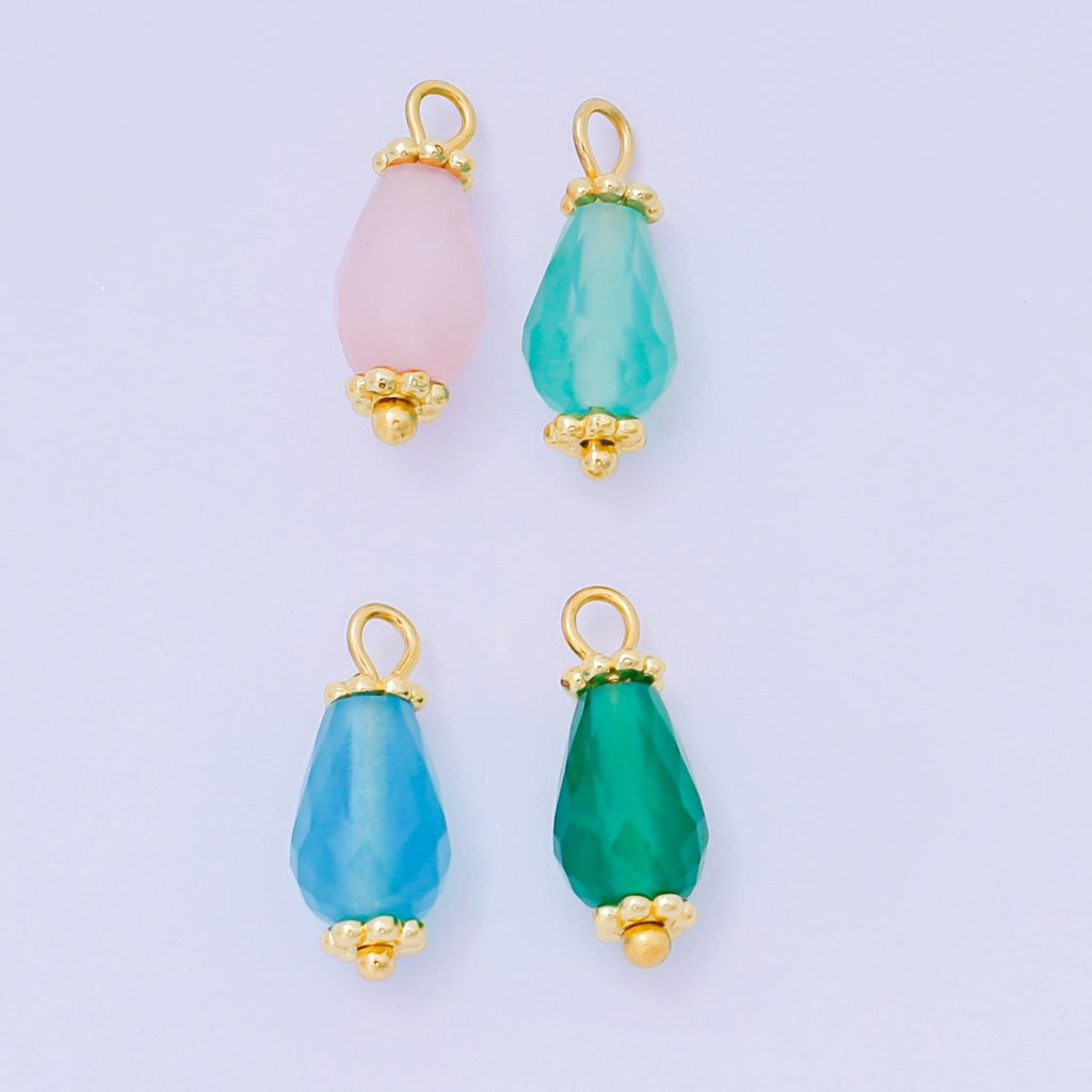 24K Gold Filled 15.5mm Acrylic Art Pastel Paradise Teardrop Charm in Pink, Blue, & Green | AH-657 AH-658