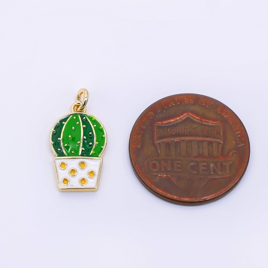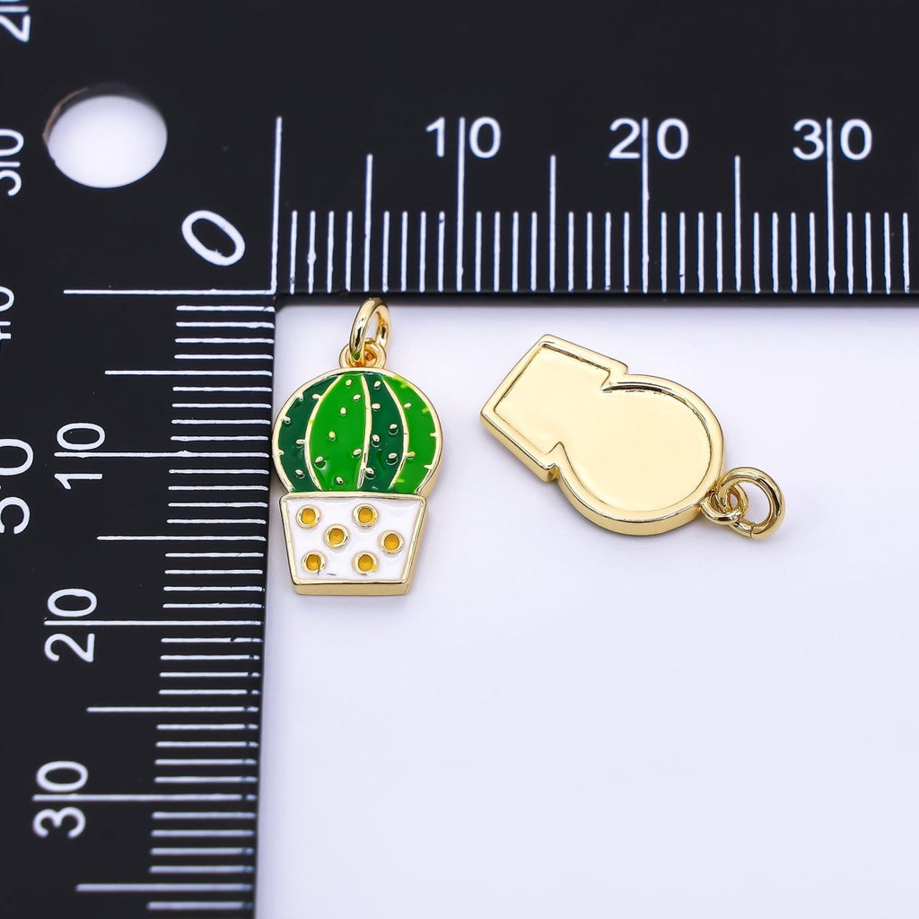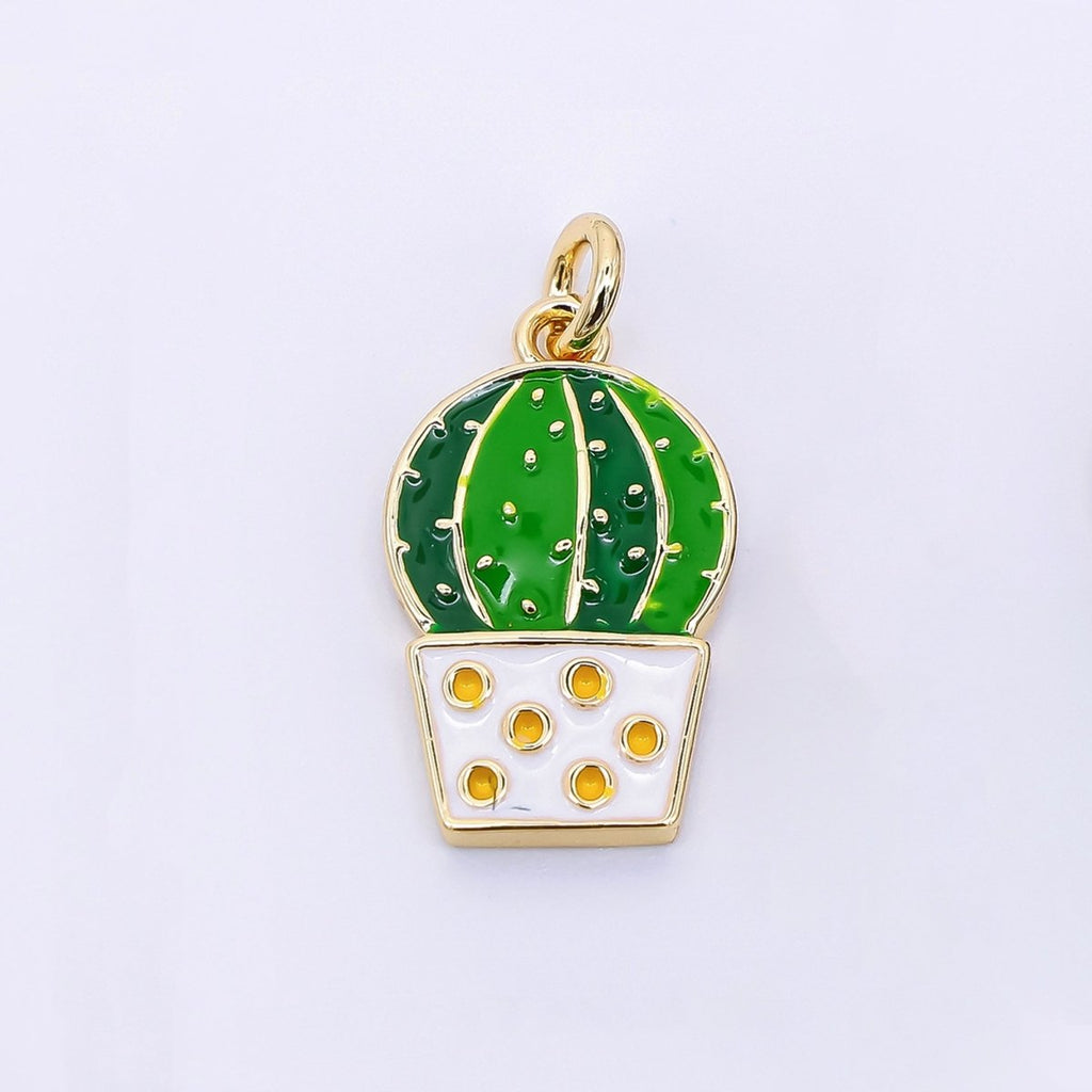 24K Gold Filled 15mm Enamel Art Cactus Plant Charm | AF-515