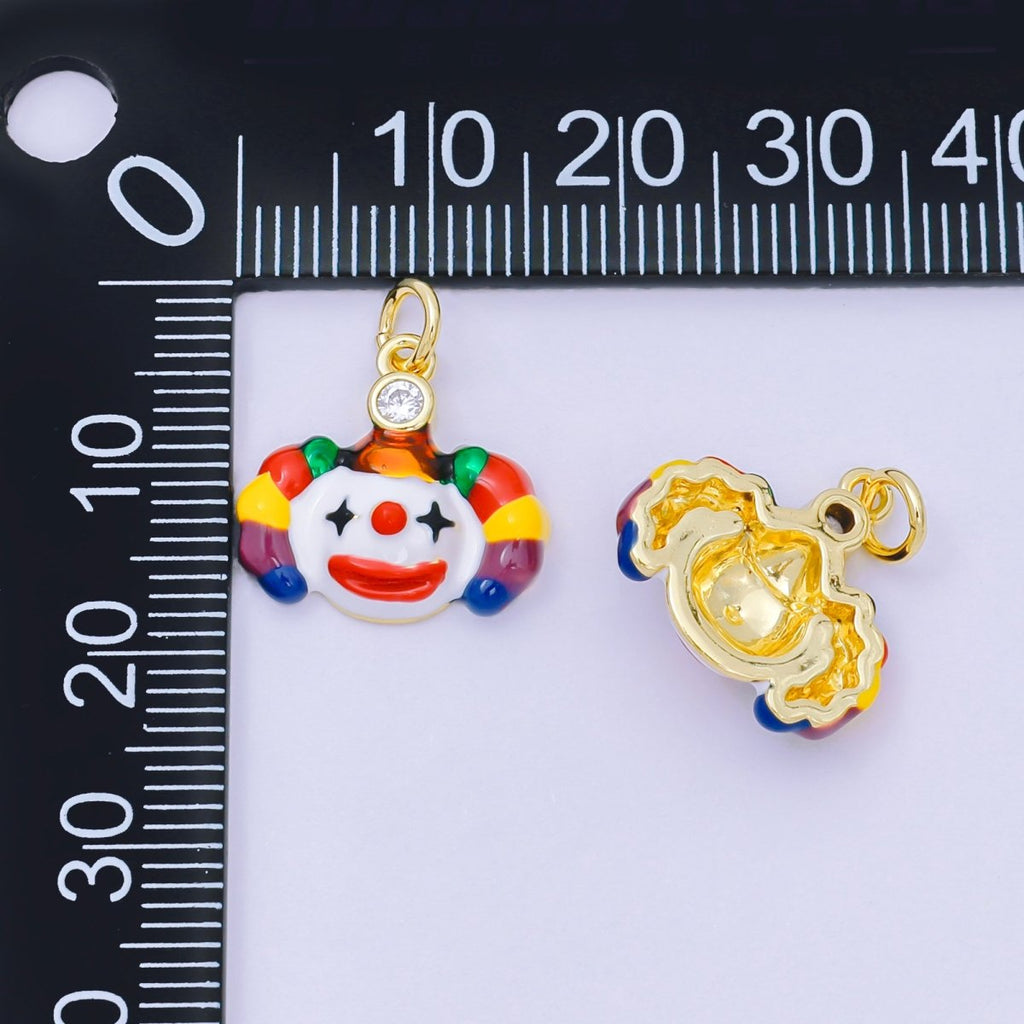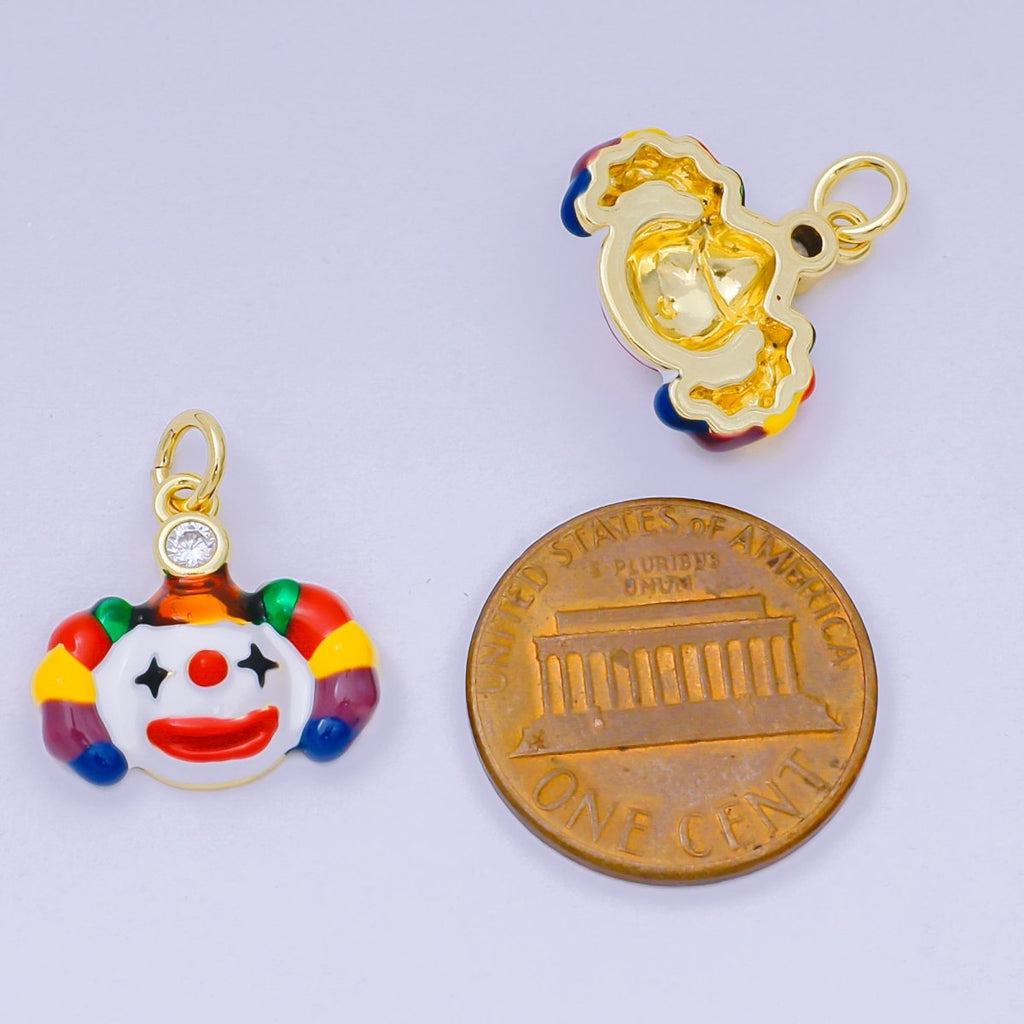 24K Gold Filled 15mm Enamel Art Funny Silly Clown Face Charm | D-254