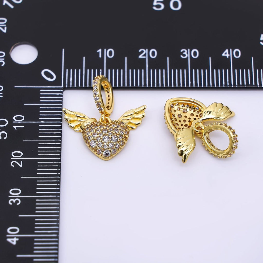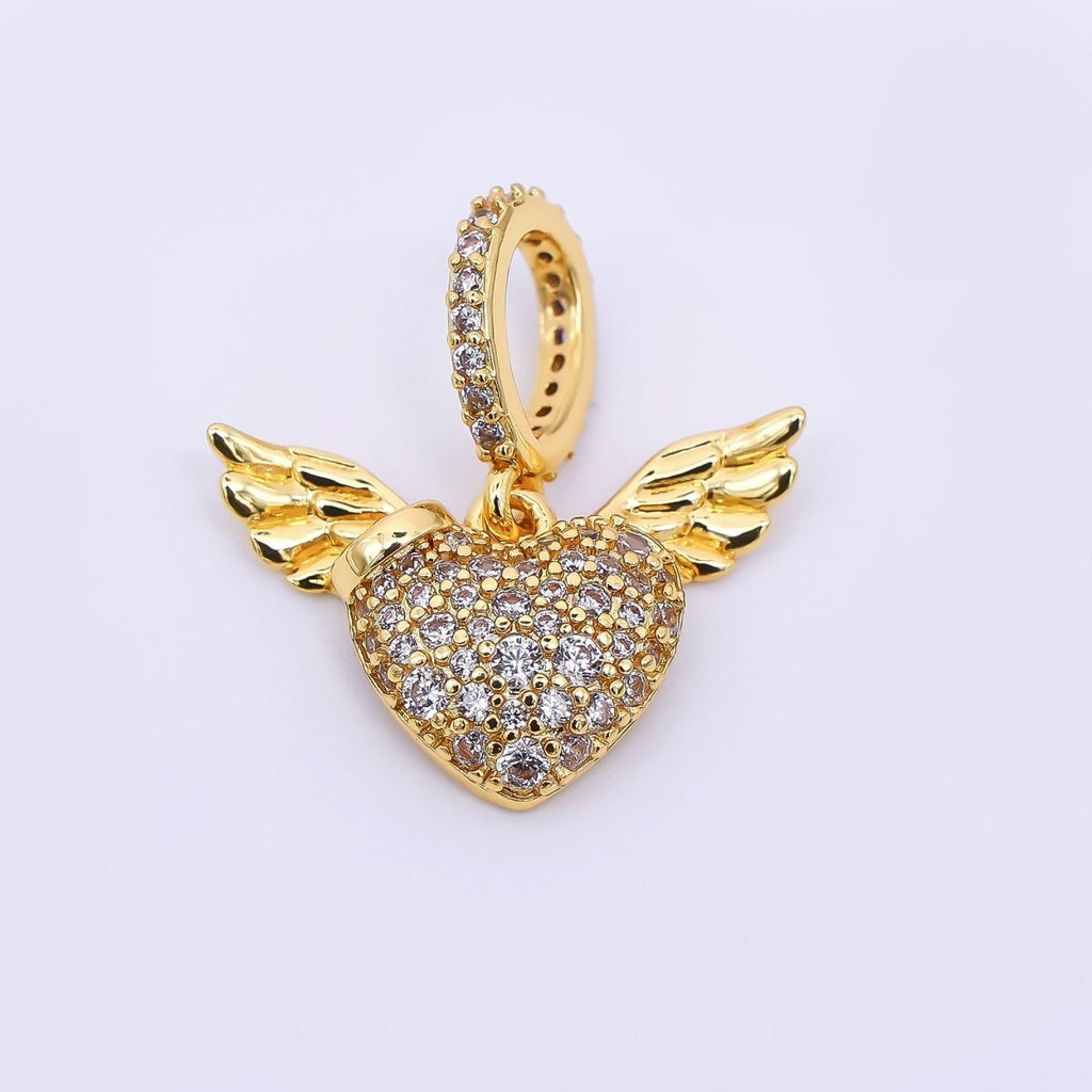 24K Gold Filled 15mm Micro Paved CZ Heart & Wings Angel Charm | AH-460