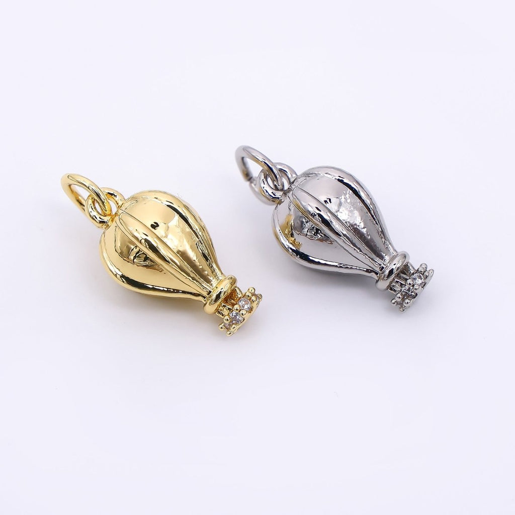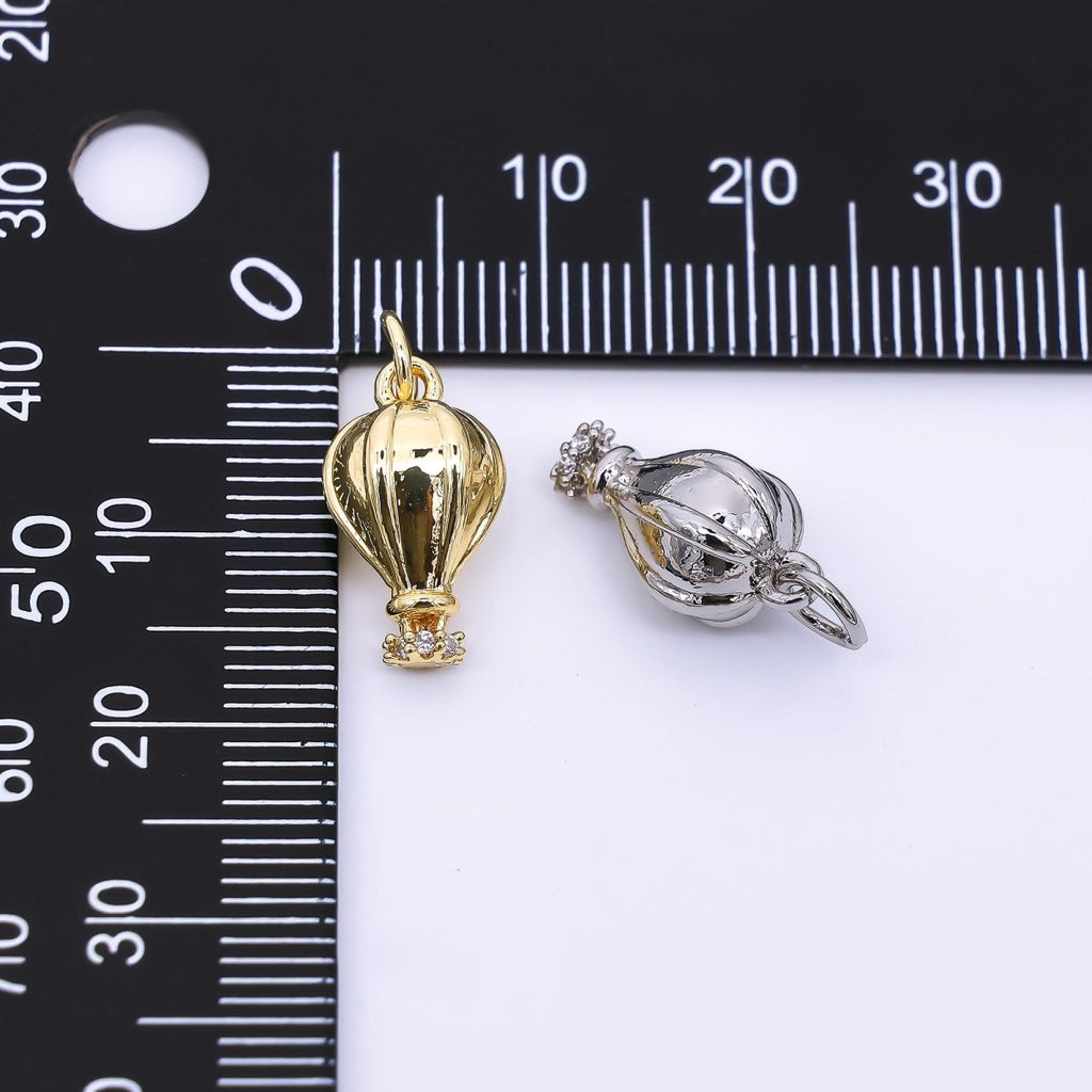 24K Gold Filled Micro Paved CZ Hot Air Balloon Charm in Gold & Silver | M748