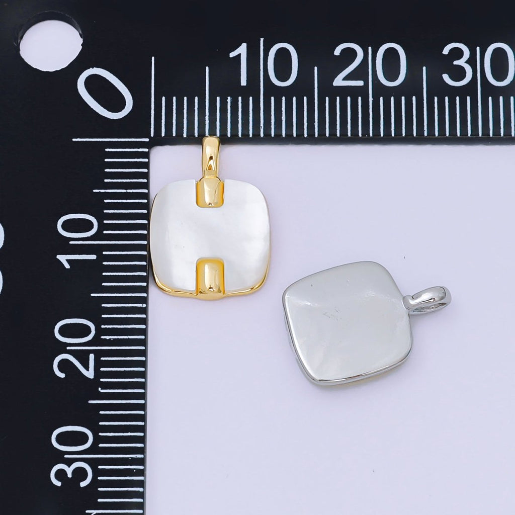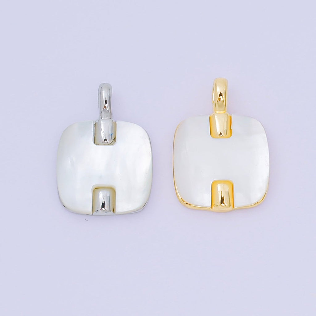 24K Gold Filled 15mm square Shell Pearl Charm Minimalist Jewelry in Gold & Silver | AA-1583