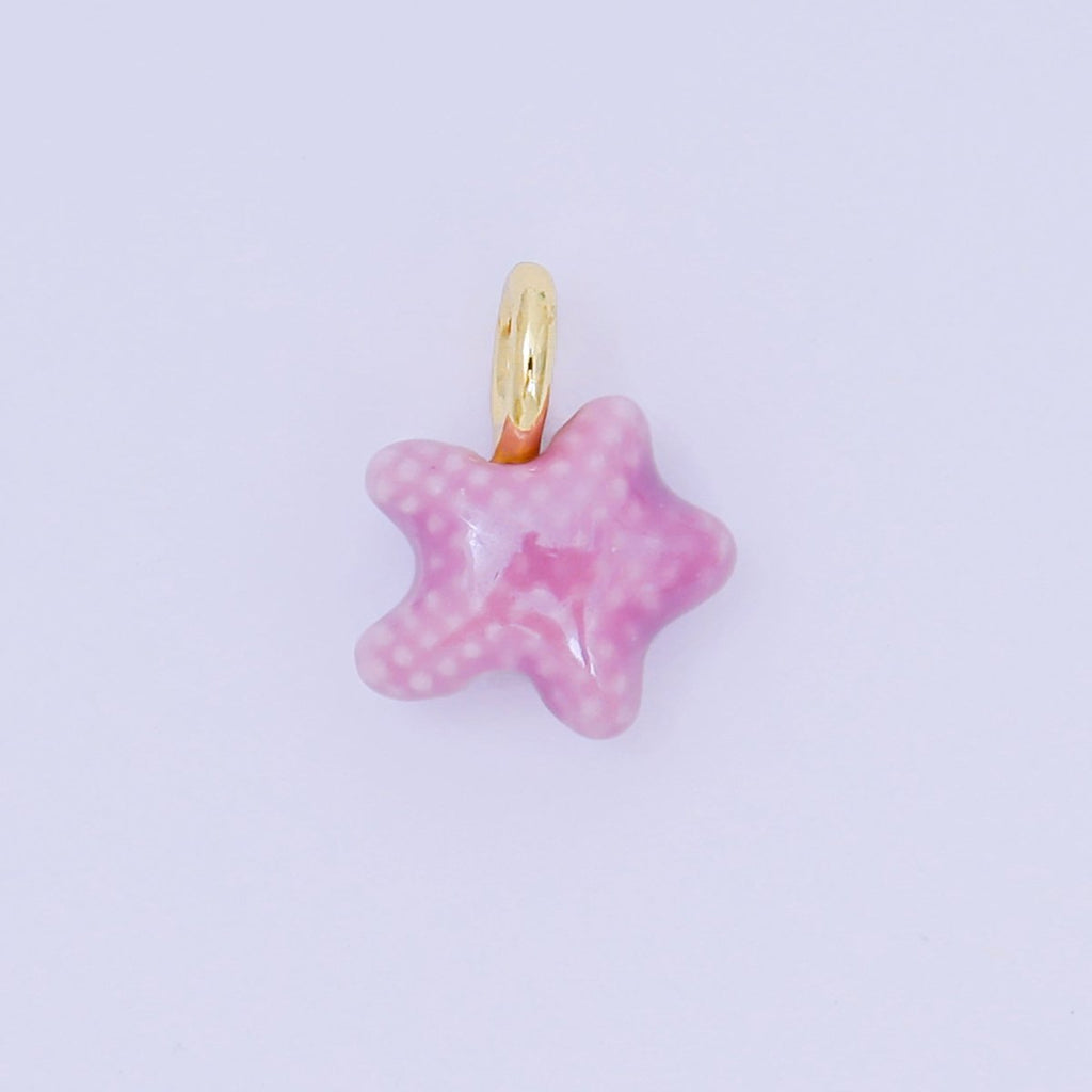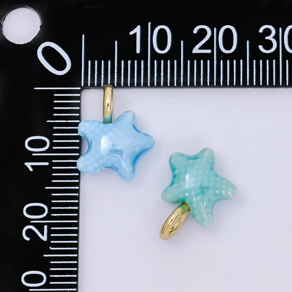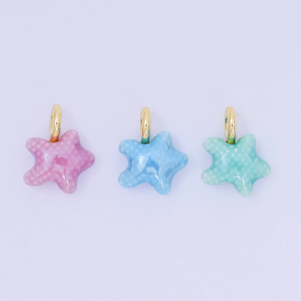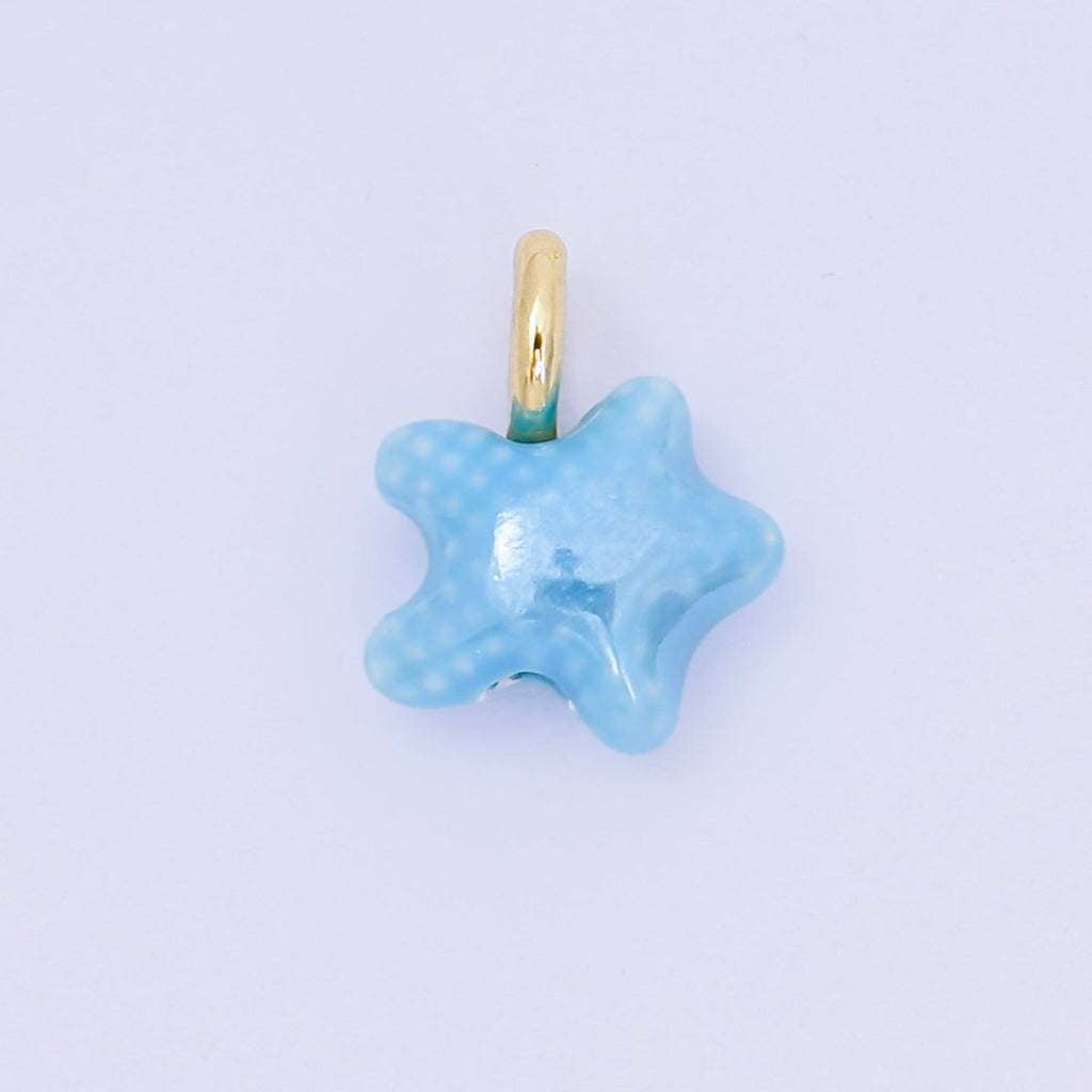 24K Gold Filled 15mm Ceramic Art Pastel Polkadot Star Charm in Blue, Green, & Purple | D-481 D-512