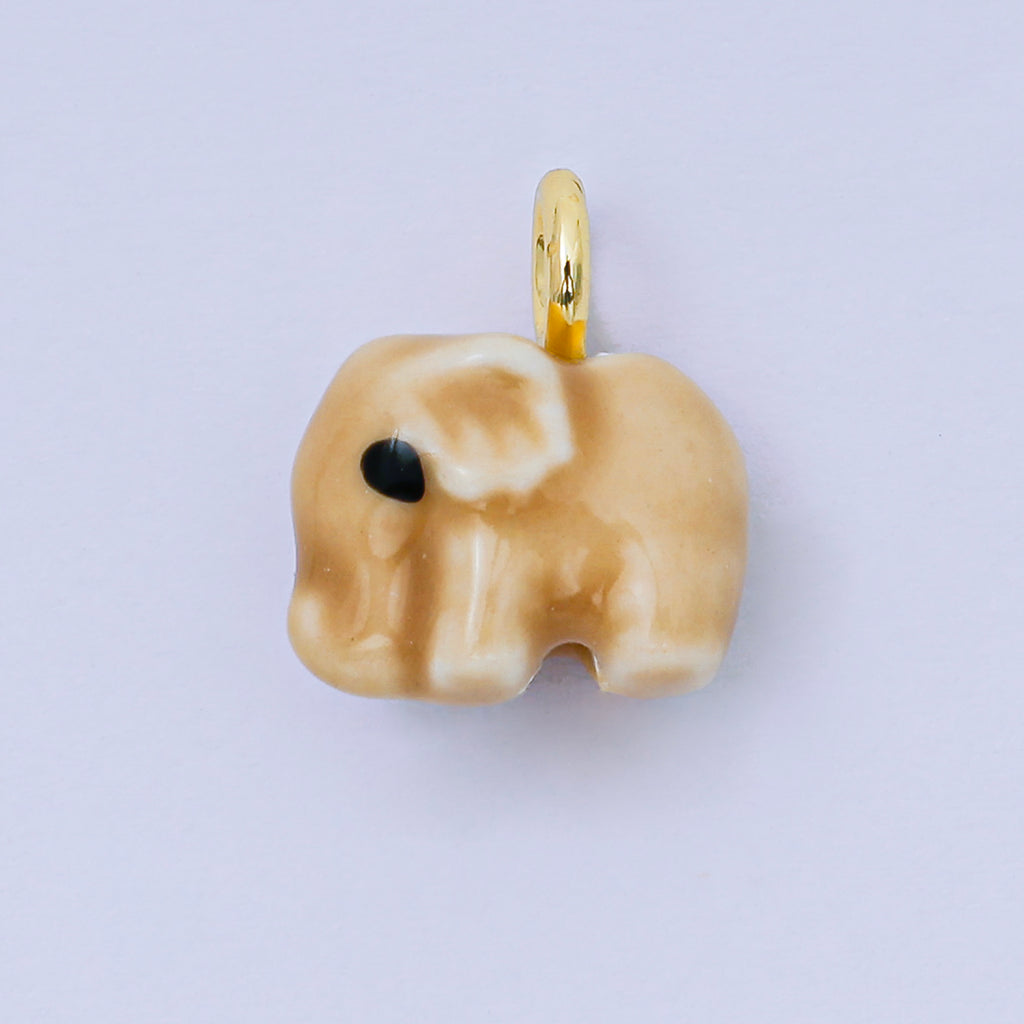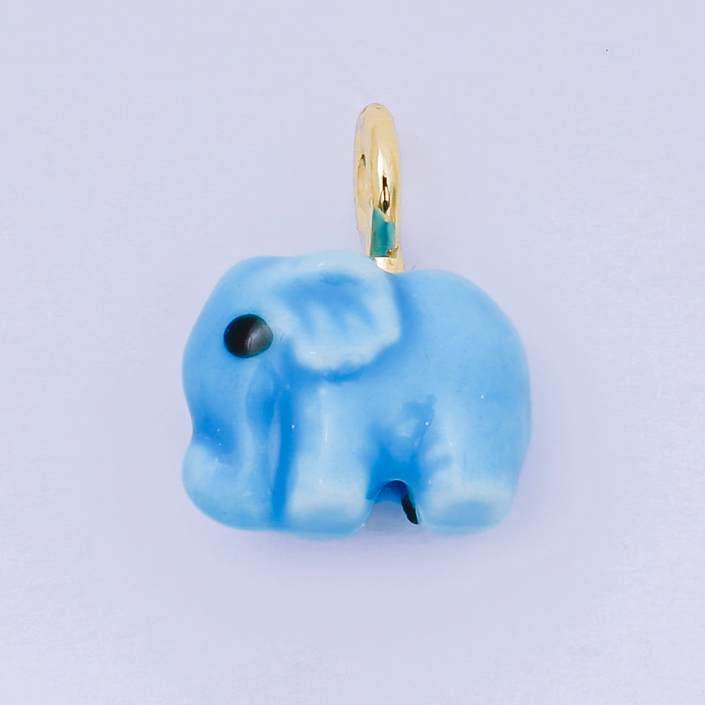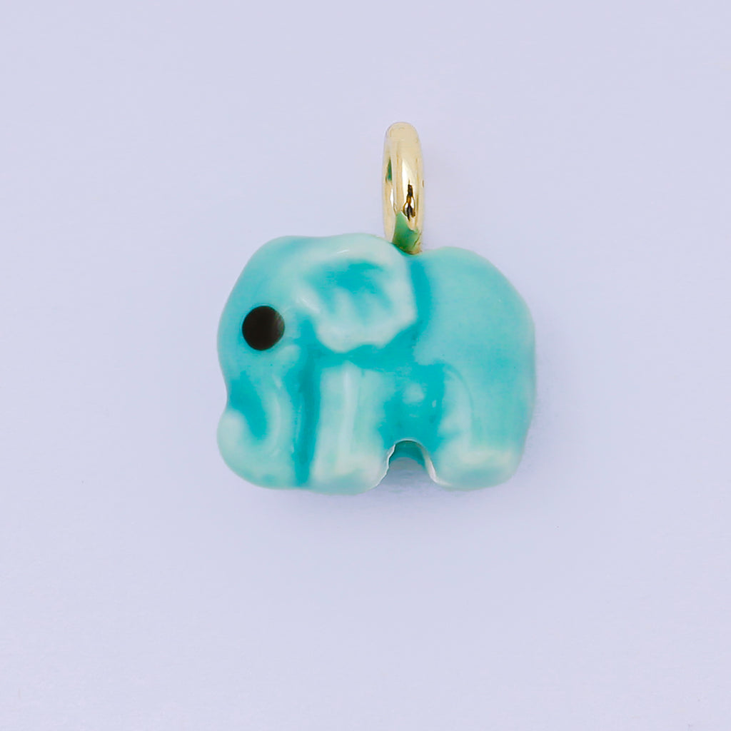 24K Gold Filled 16mm Blue, Orange, Green, Teal, White, Yellow, Brown, Pink, Blue, Green Ceramic Porcelain Elephant Animal Drop Charm | C948 - C952