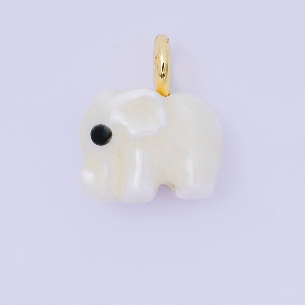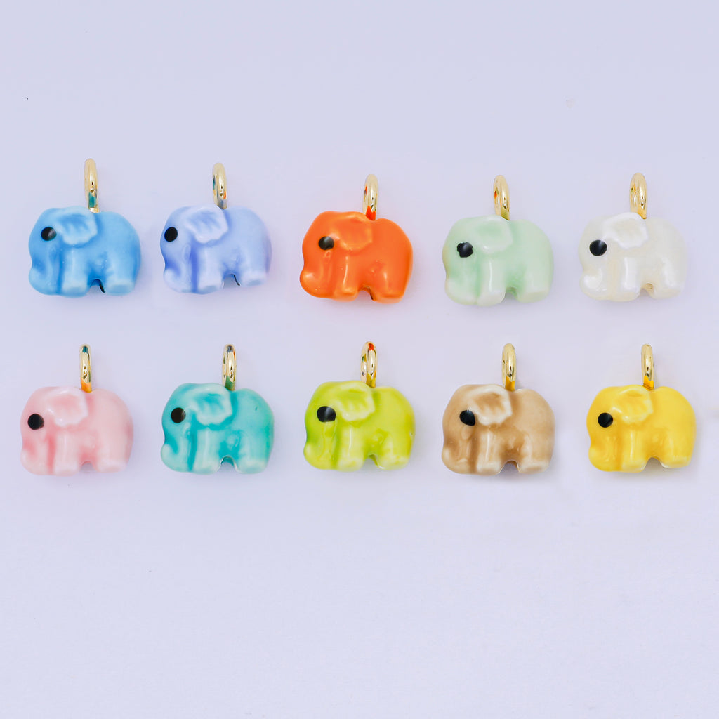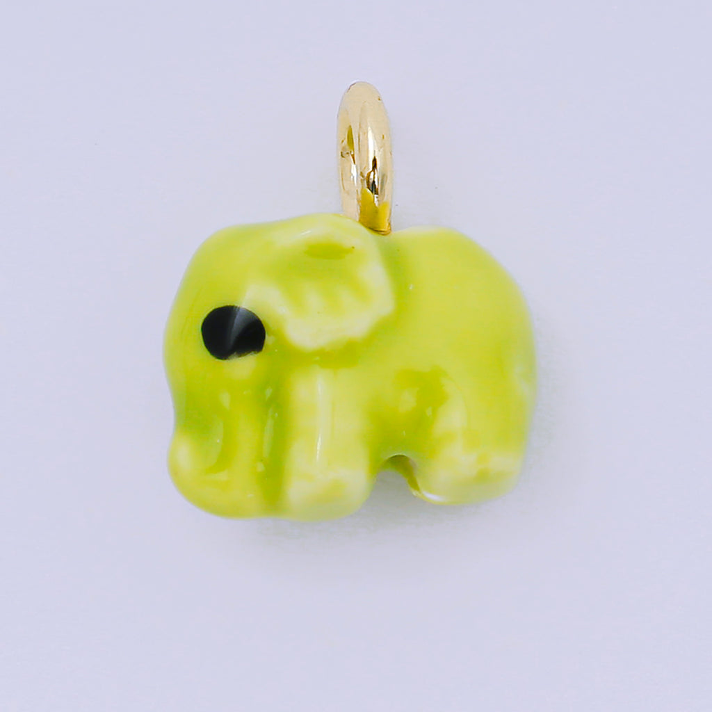 24K Gold Filled 16mm Blue, Orange, Green, Teal, White, Yellow, Brown, Pink, Blue, Green Ceramic Porcelain Elephant Animal Drop Charm | C948 - C952