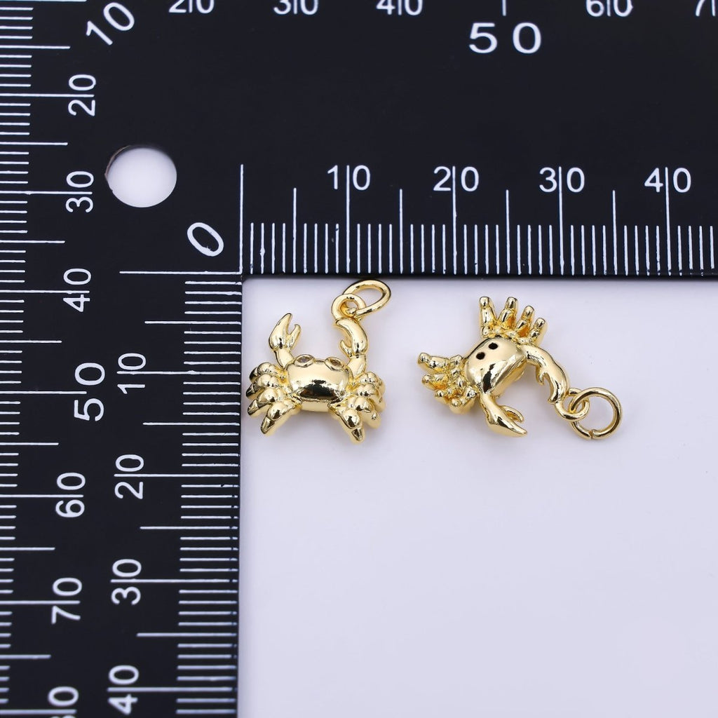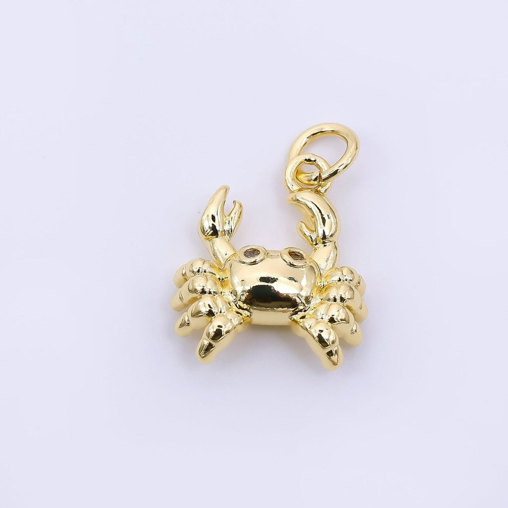 24K Gold Filled CZ Crustacean Crab Summer Multidimensional Charm | M753