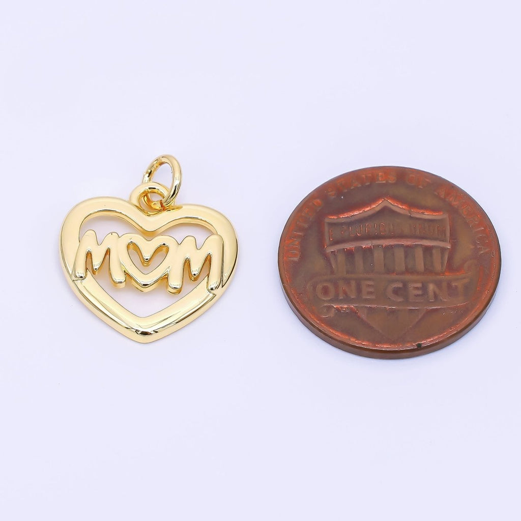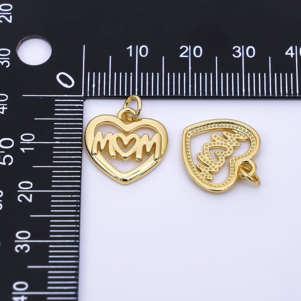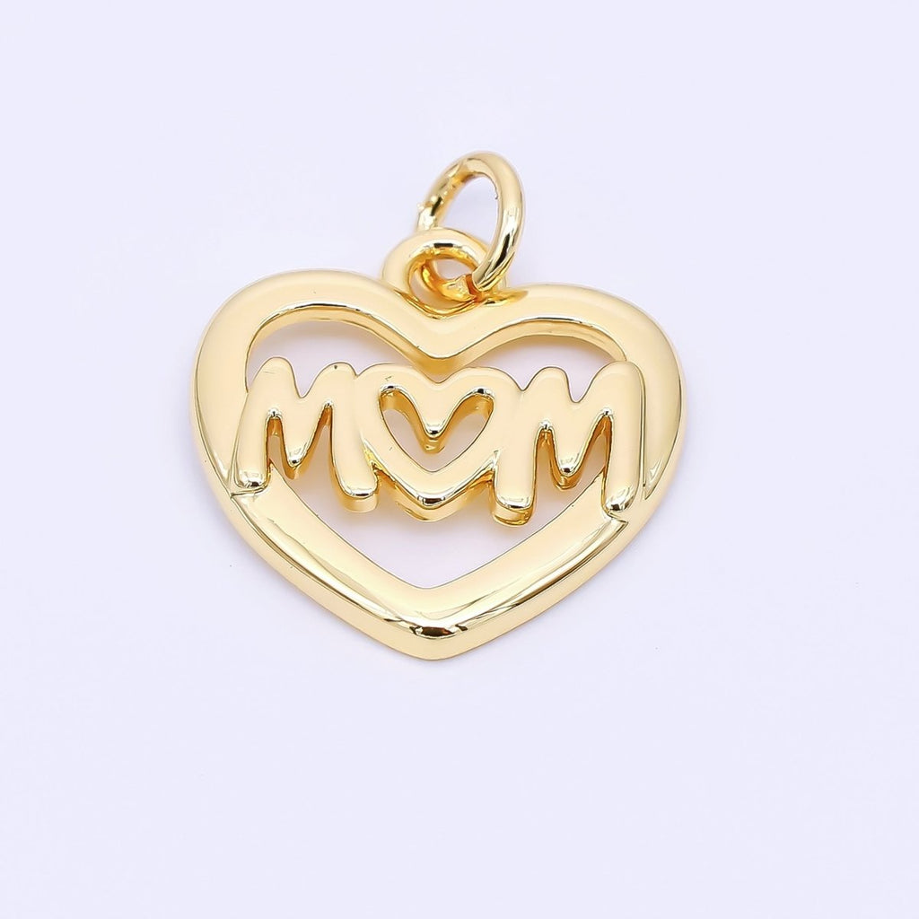 24K Gold Filled 16mm Mother's Day Mom Heart Charm | AH-559