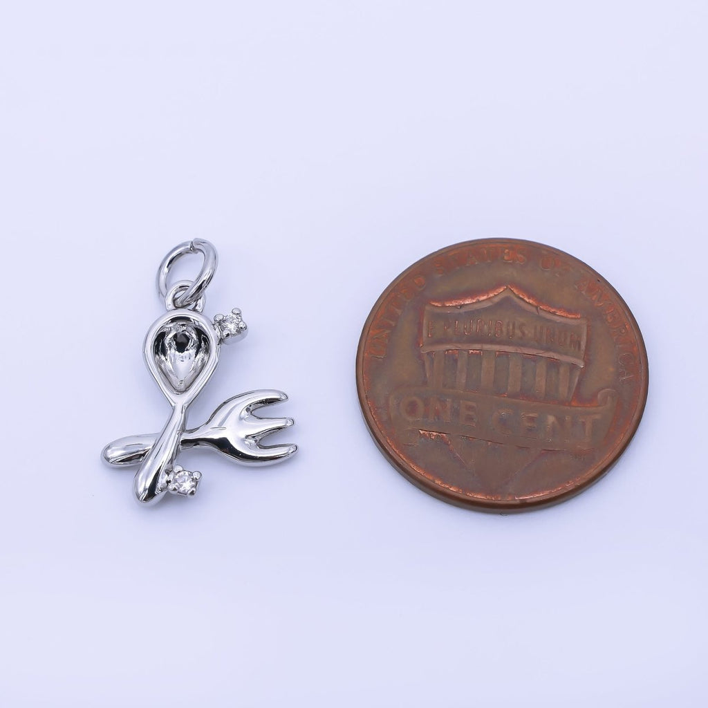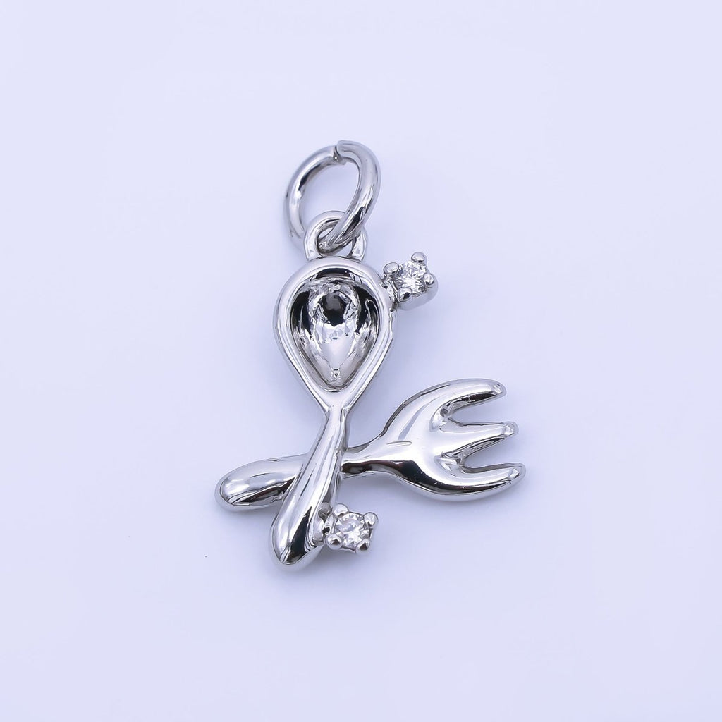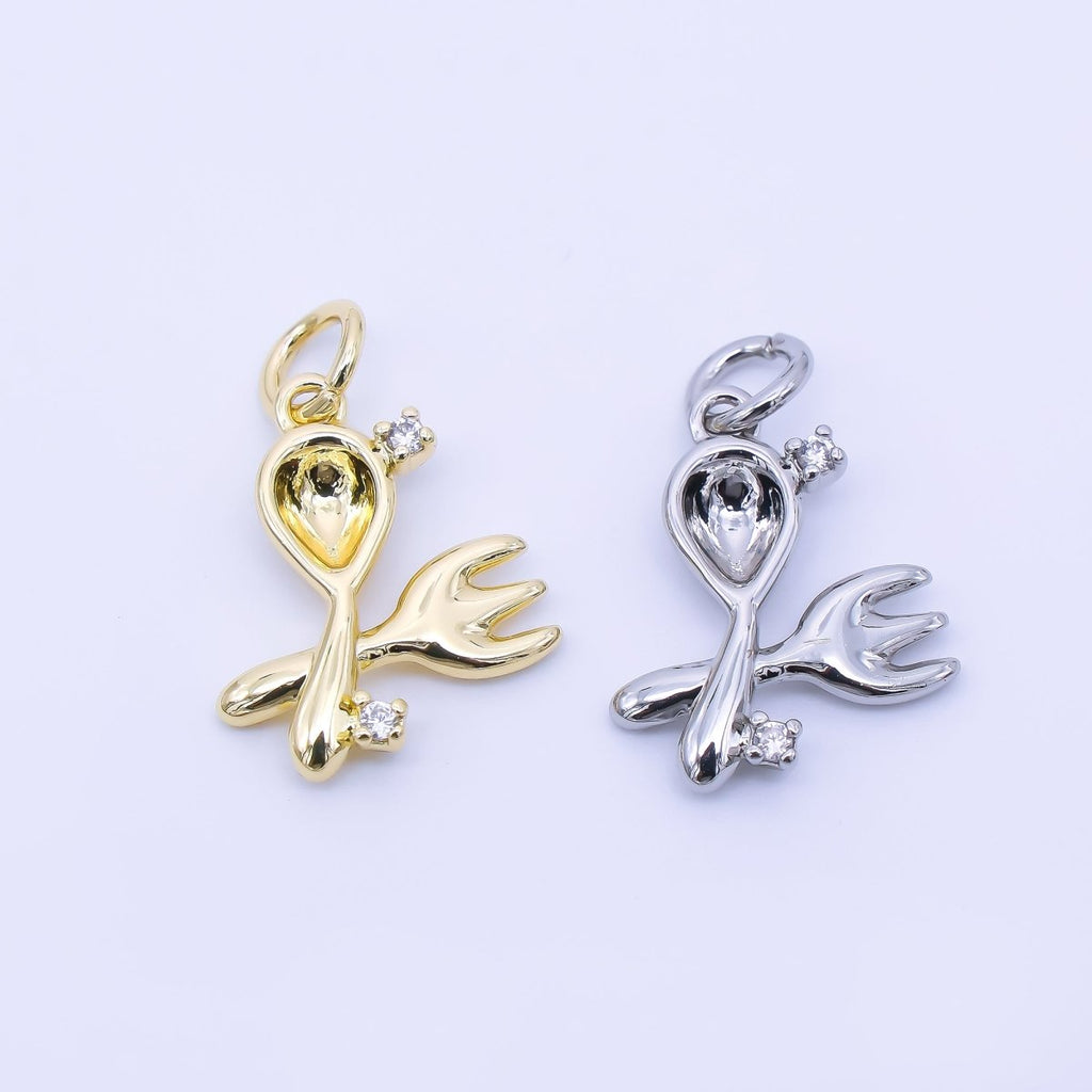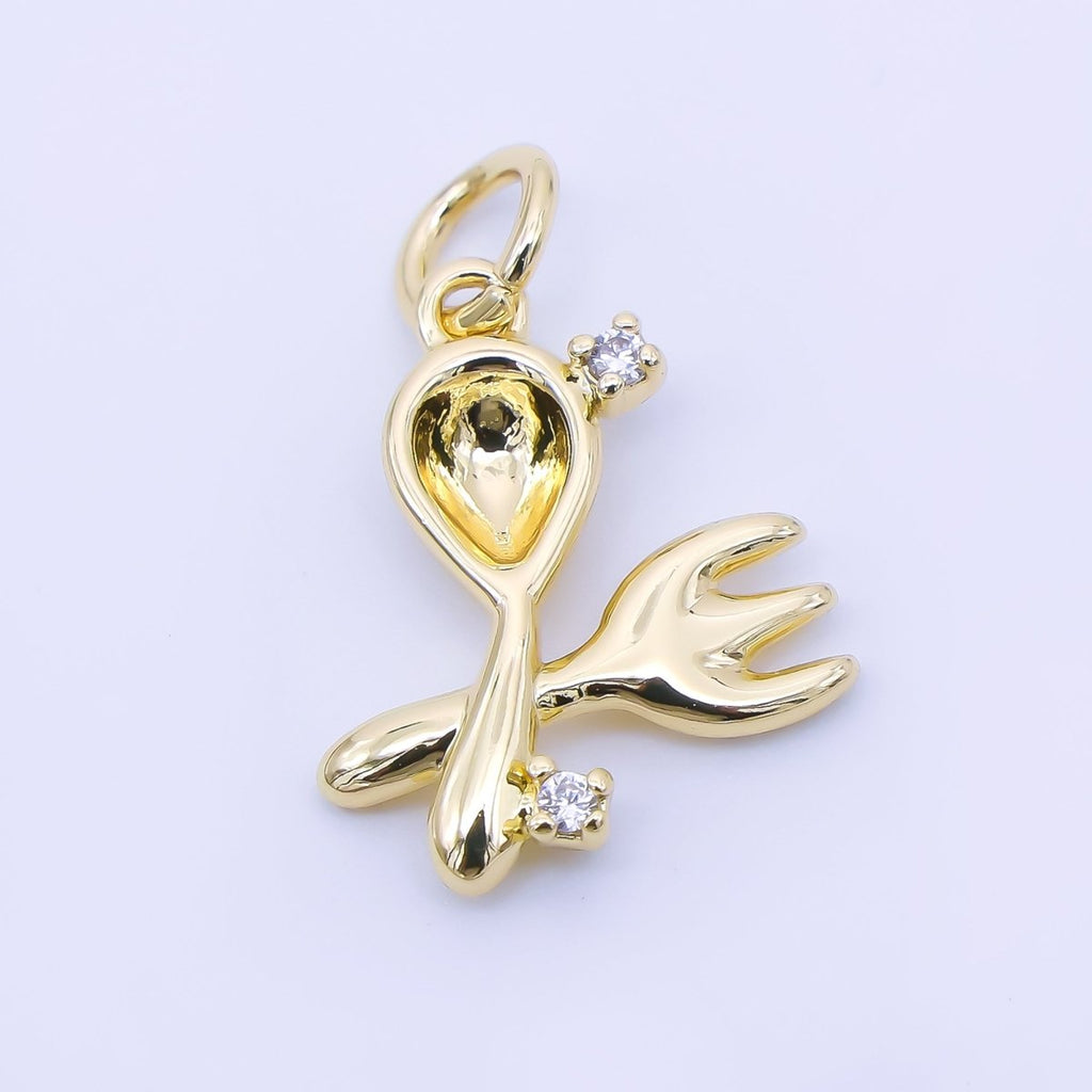 14K Gold Filled 16mm Twin Oval CZ Spoon, Fork Kitchen Utensils Charm | AF1292