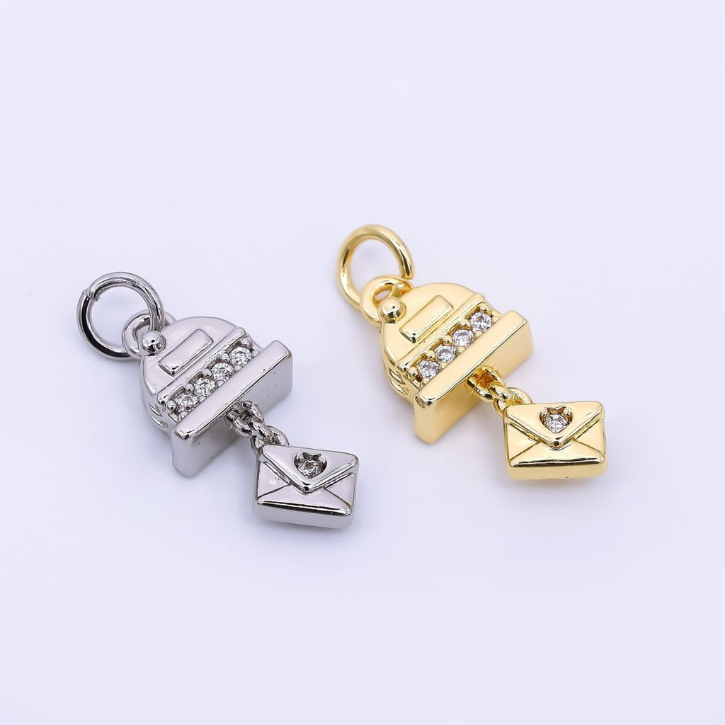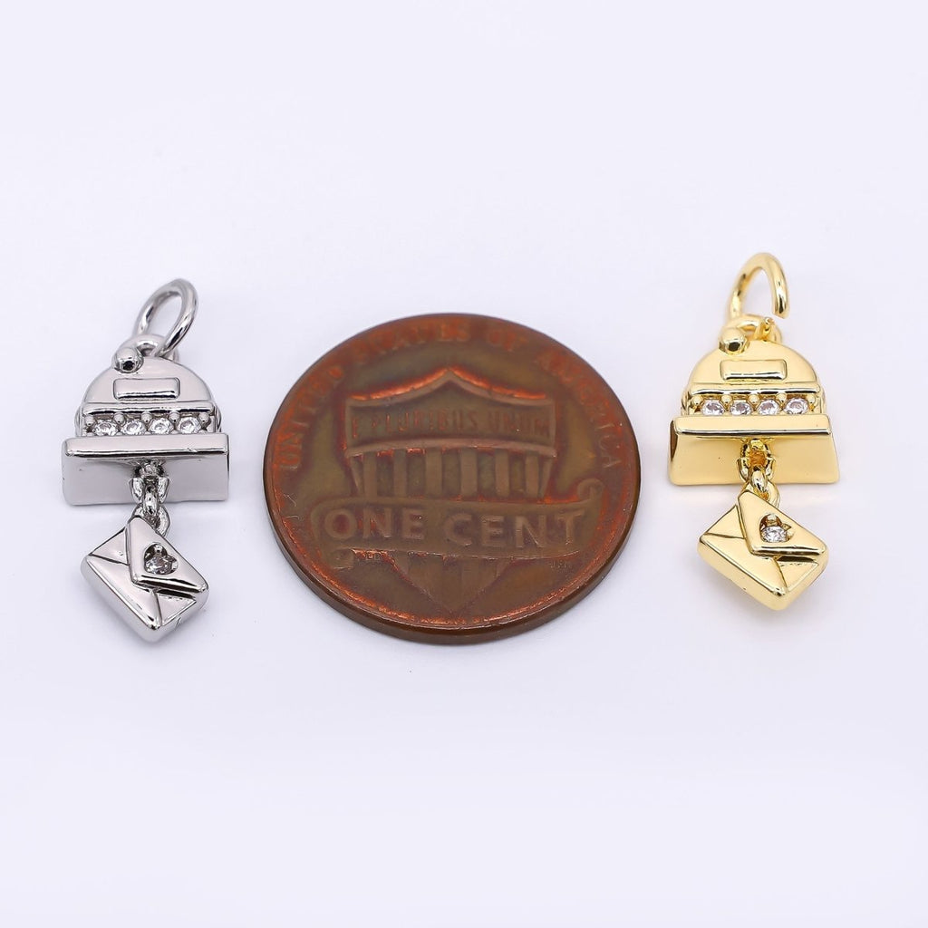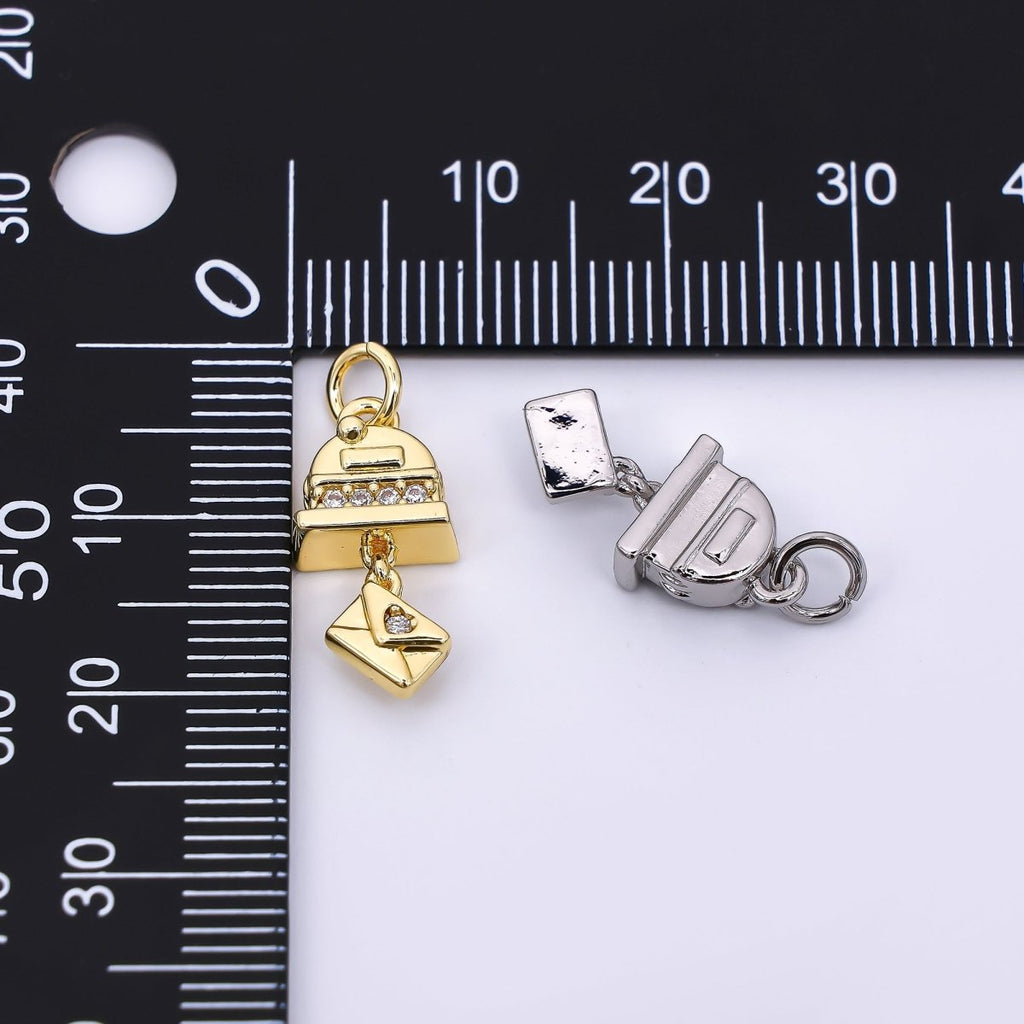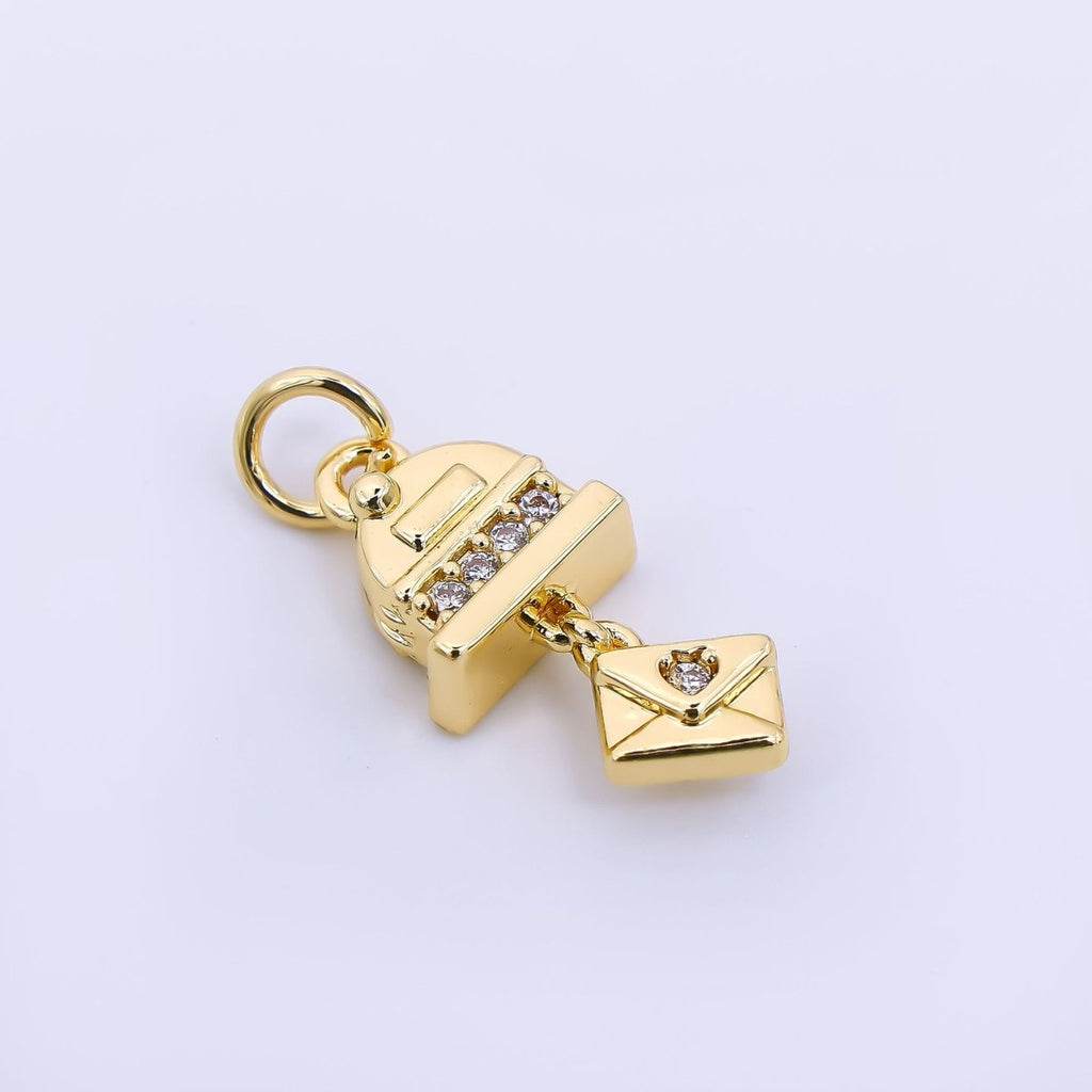 24K Gold Filled 17.5mm Micro Paved CZ Love Letter & Mailbox Drop Charm | M-675