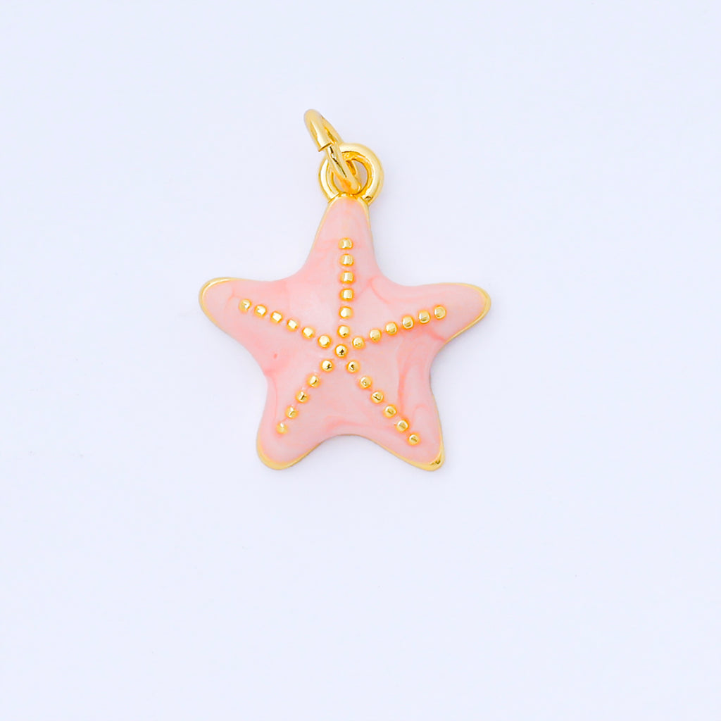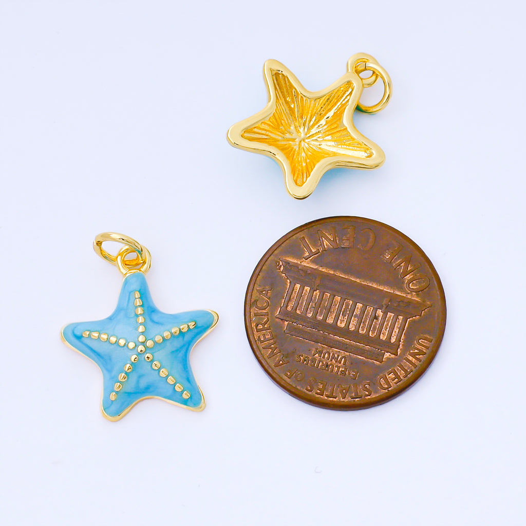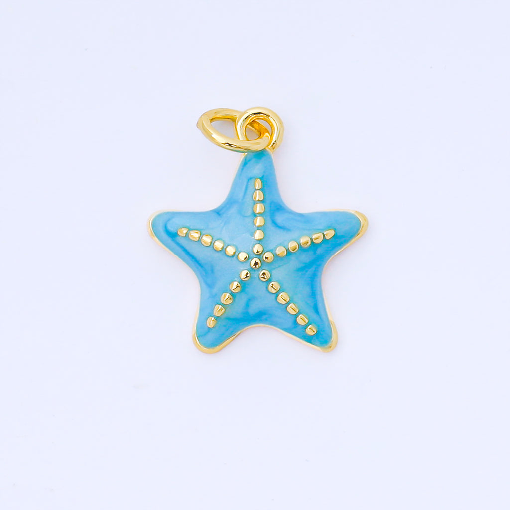 24K Gold Filled 17mm Handpainted Teal, White, Blue Enamel Under the Sea Starfish Animals Charm | AF1542 AF1543