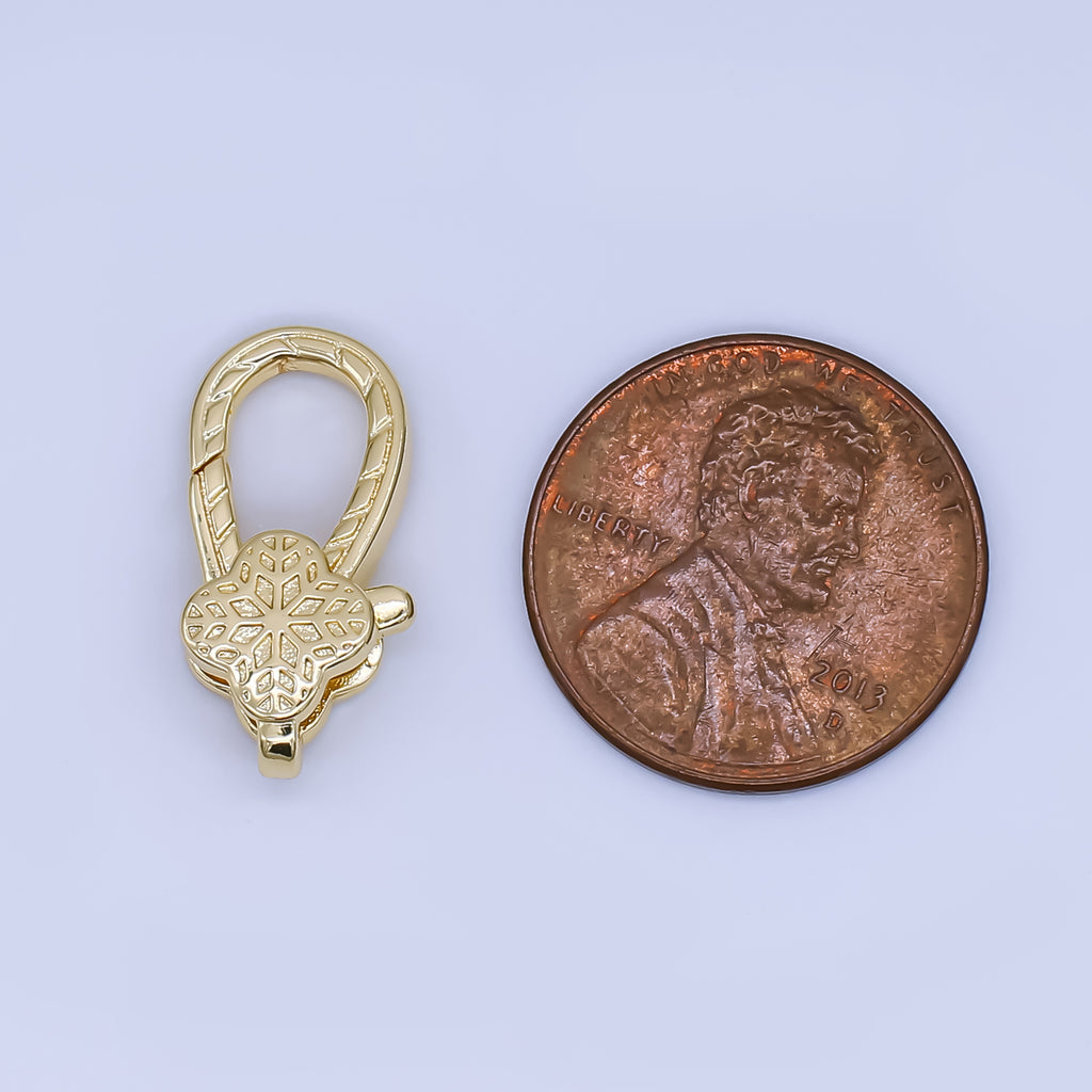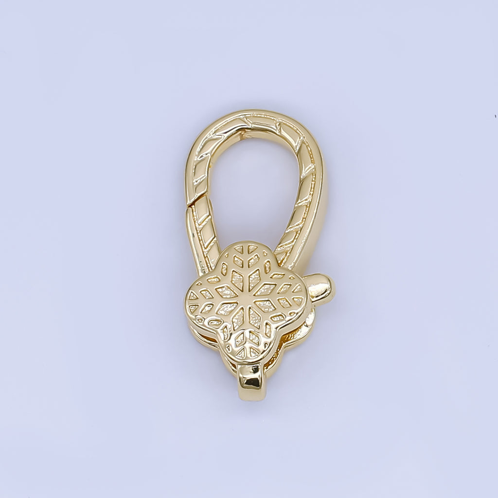 24K Gold Filled 18.6mm Design Textured Snowflake Lobster Clasp Charm Finding | Z1354