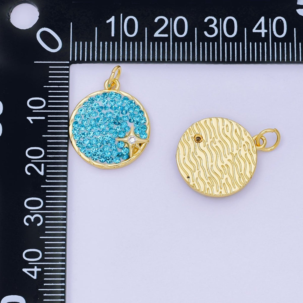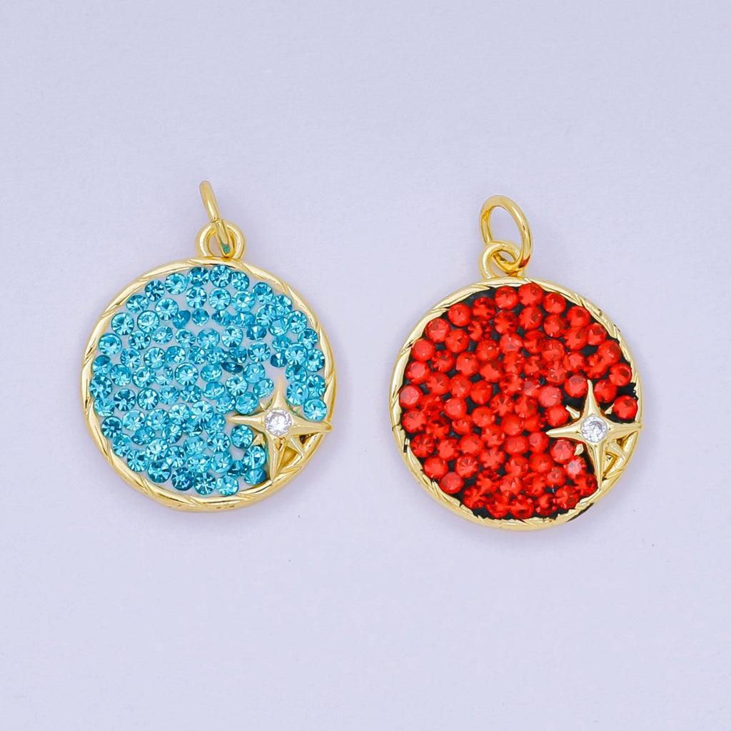 24K Gold Filled 18mm Blue & Red Micro Paved CZ Stars & Moon Constellations Charm | AH-672
