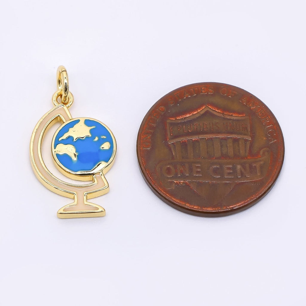 24K Gold Filled 18mm Enamel Art World Globe Map Charm | AF-522