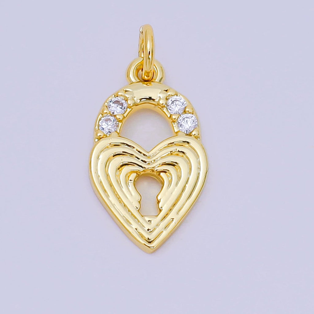 24K Gold Filled 18mm Micro Paved CZ Heart Padlock Charm | AH-641