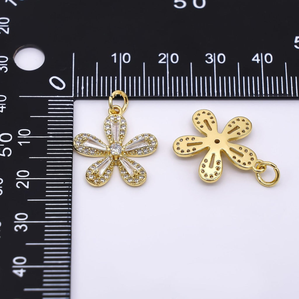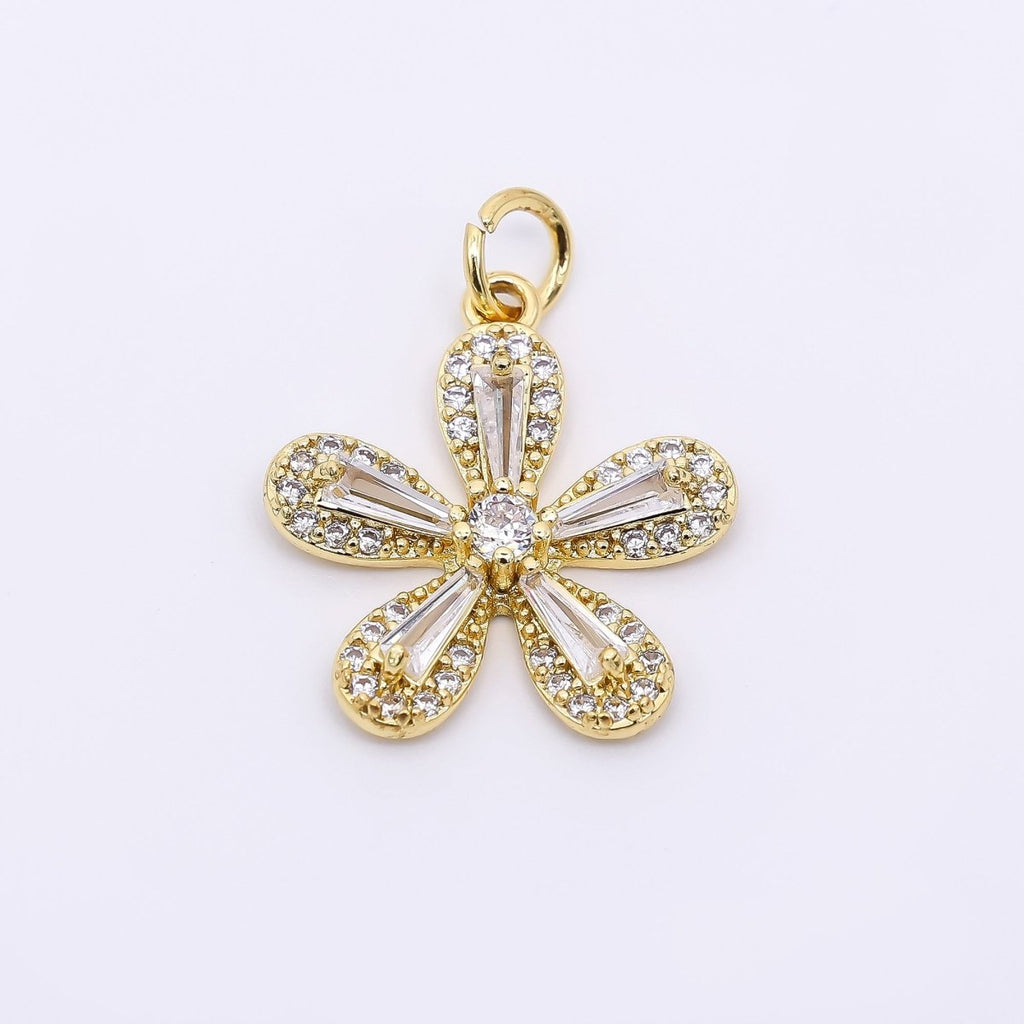24K Gold Filled 19mm Mixed-Cut CZ Amarylis Blossom Flower Charm | AJ-498