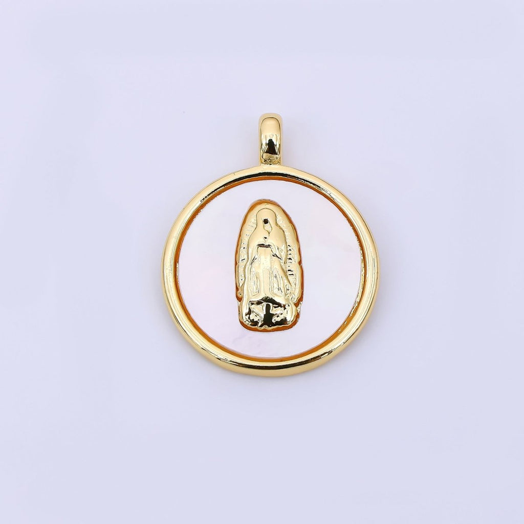 24K Gold Filled 19mm Mother of Pearl Art Lady Guadalupe Virgin Mary Charm | AH-567