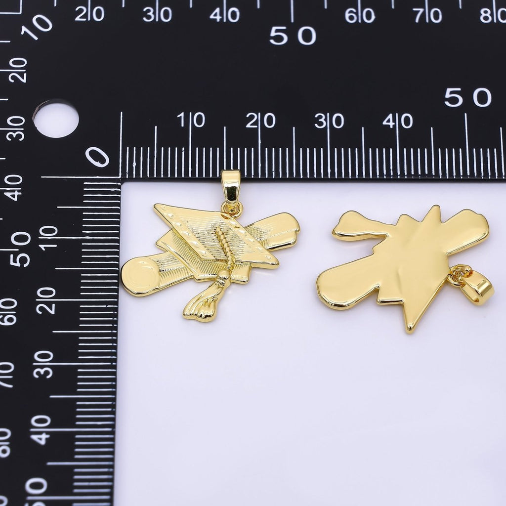 24K Gold Filled 20mm Graduation Cap & Certificate Charm | AA-1561