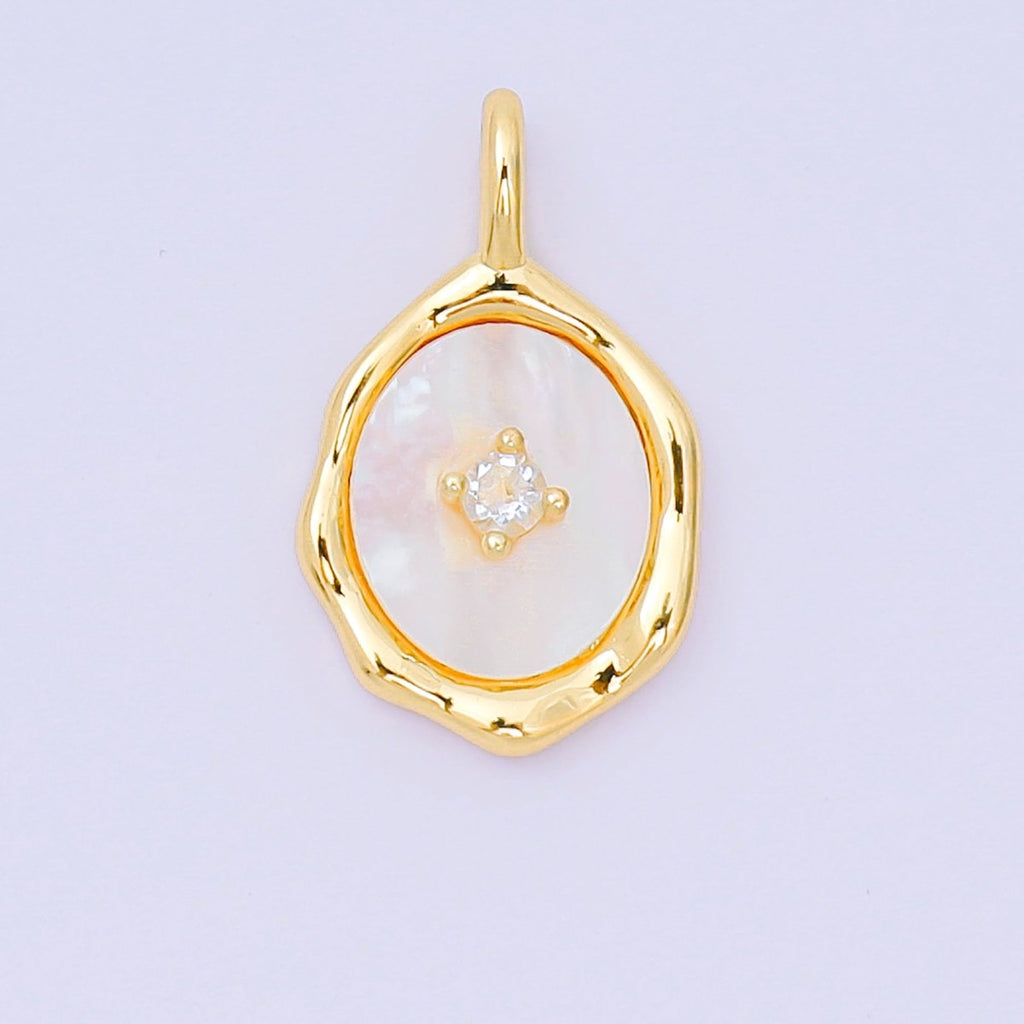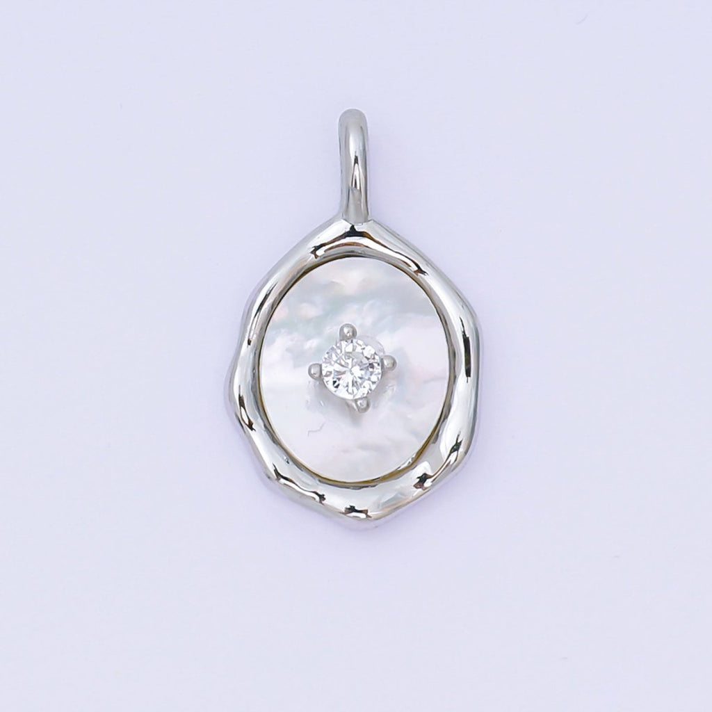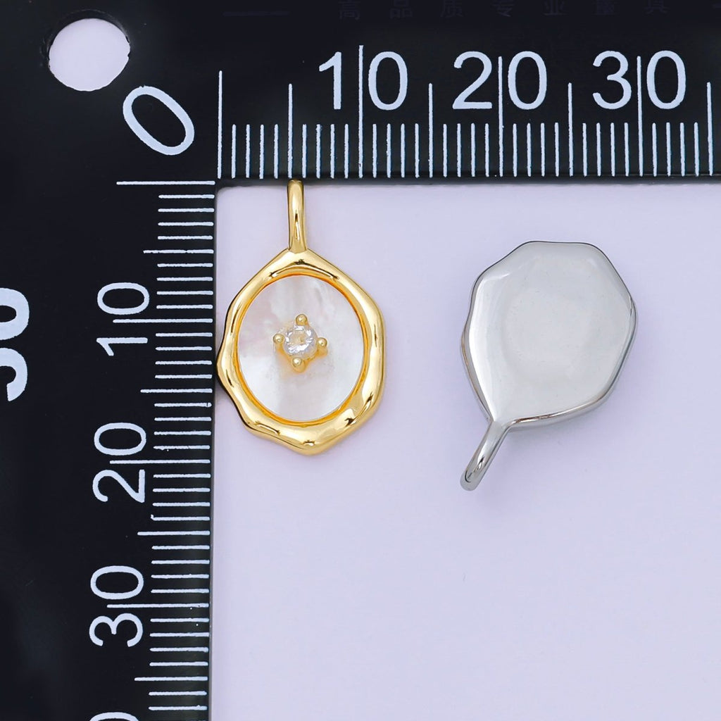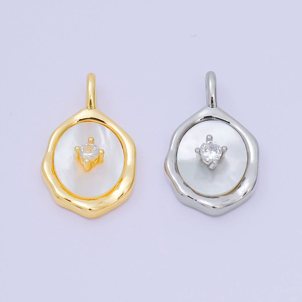 24K Gold Filled 20mm Round CZ Shell Pearl Abstract Mirror Pendant in Gold & Silver | AA-1584