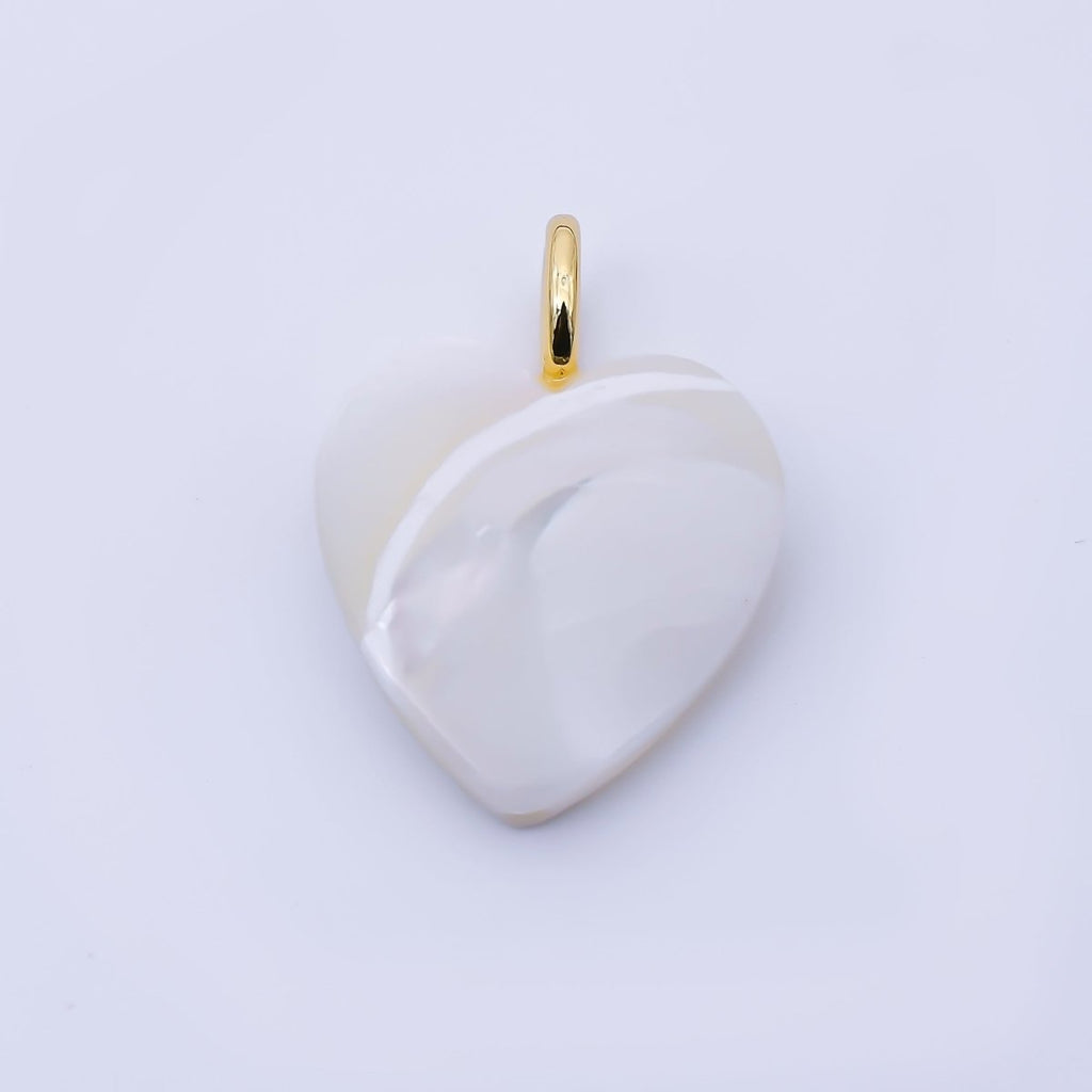 24K Gold Filled 20.7mm White Shell Pearl Heart Pendant | P1948