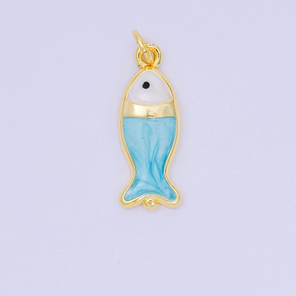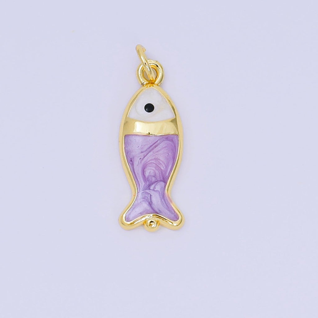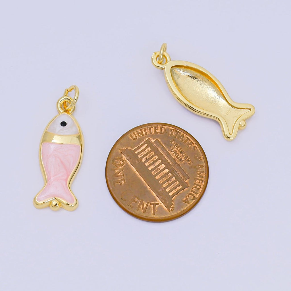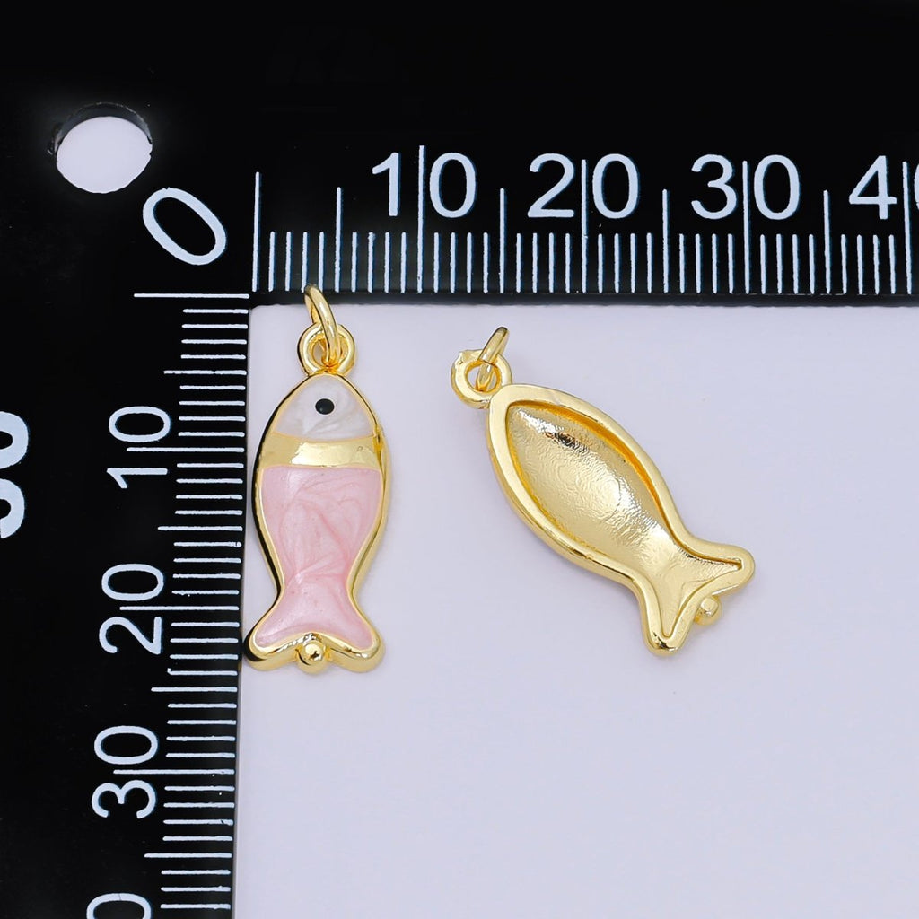 24K Gold Filled 22mm Enamel Pink Purple Blue Pastel Tiny Sea Fish Animal Charm | D-367 D-369