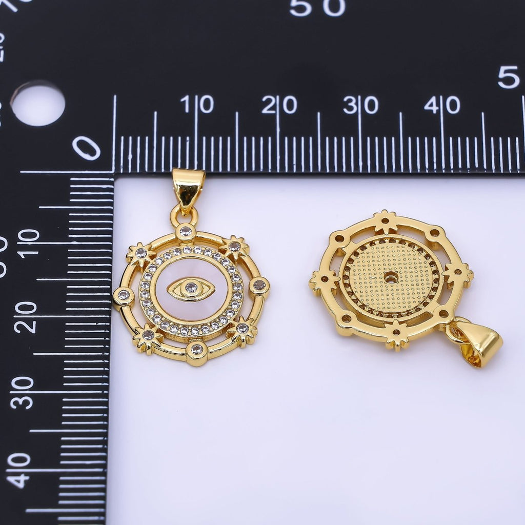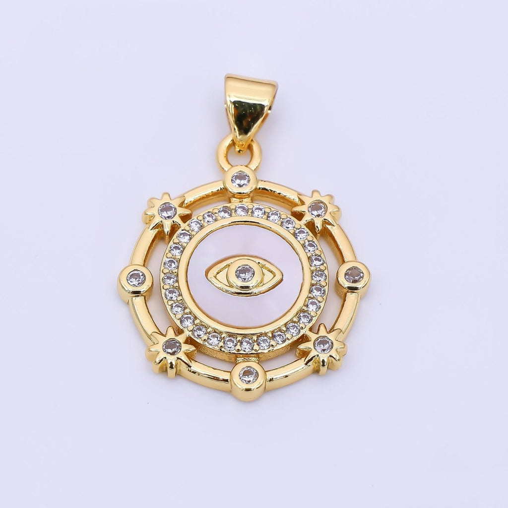 24K Gold Filled 22mm Micro Paved CZ Eye of the Angel & the Sun Charm | AH-543
