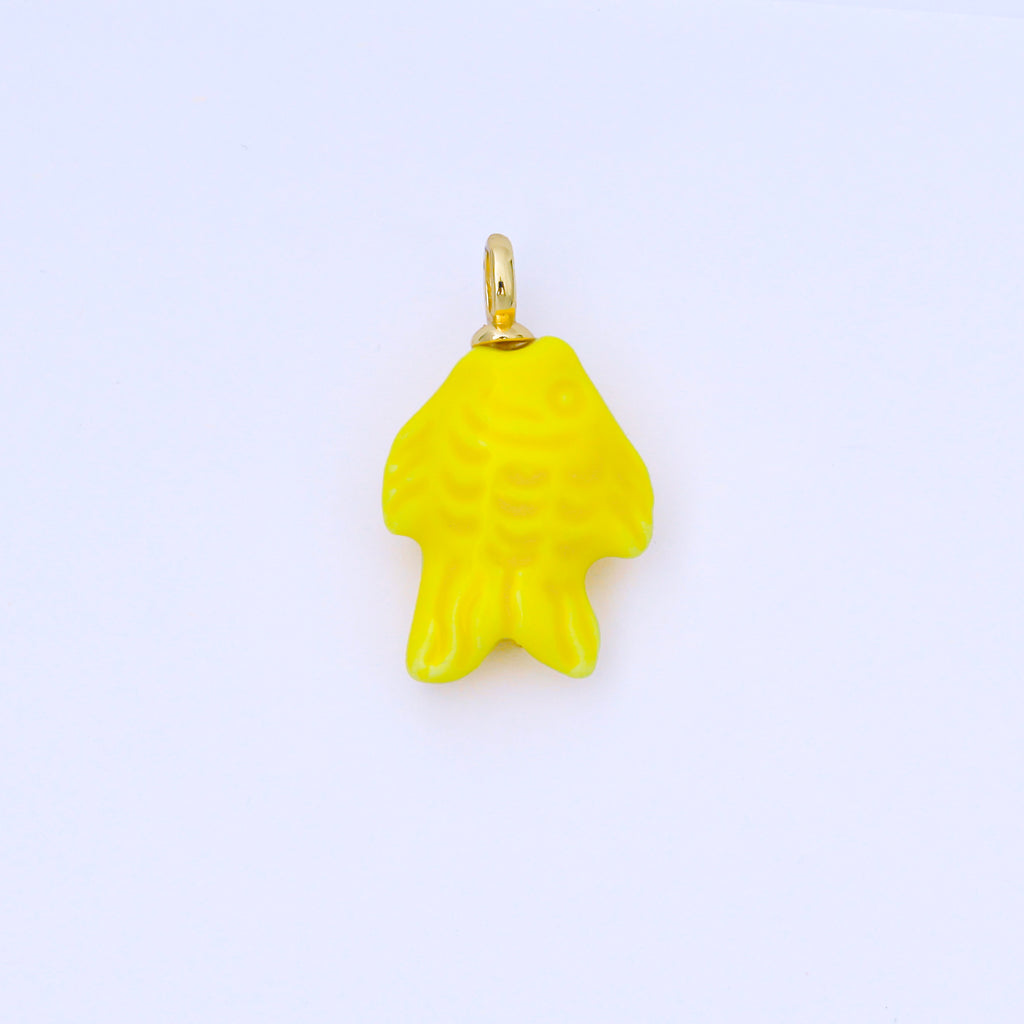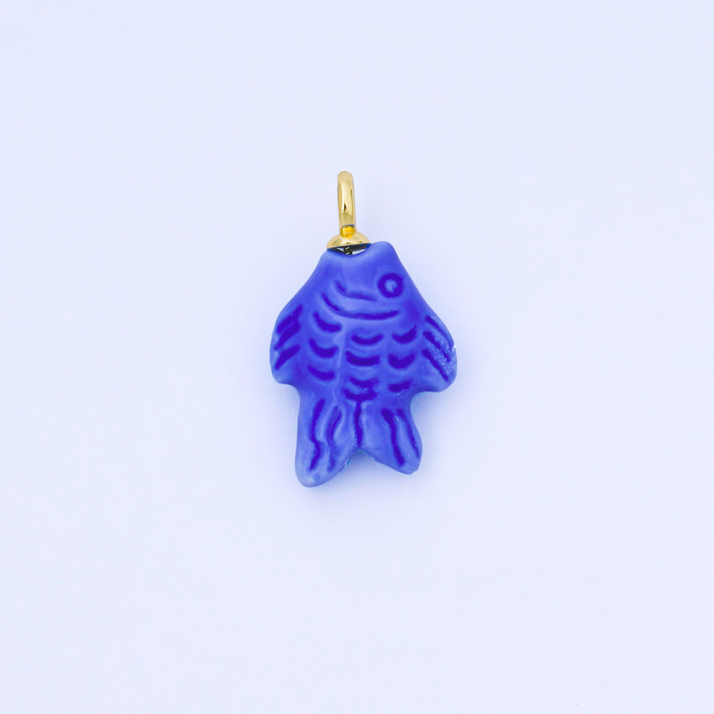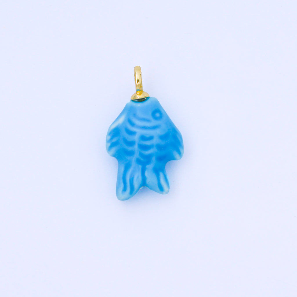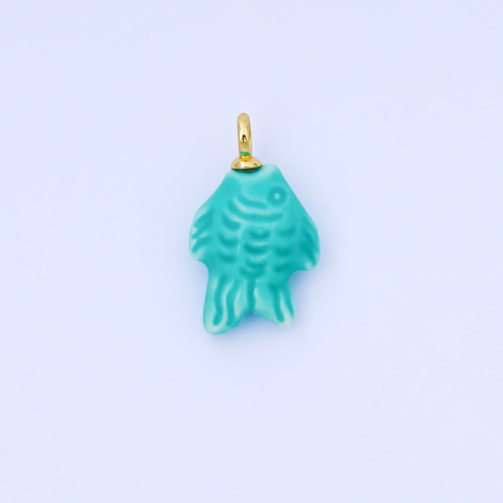 24K Gold Filled 25mm Orange, Red, Yellow, Blue, Green, Teal Fish Ceramic Porcelain Drop Charm | C960 - C963