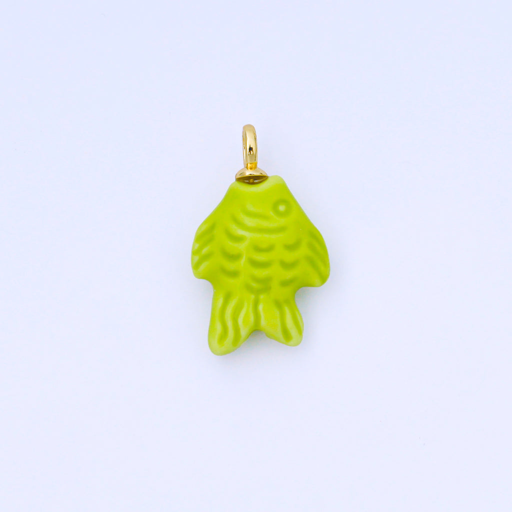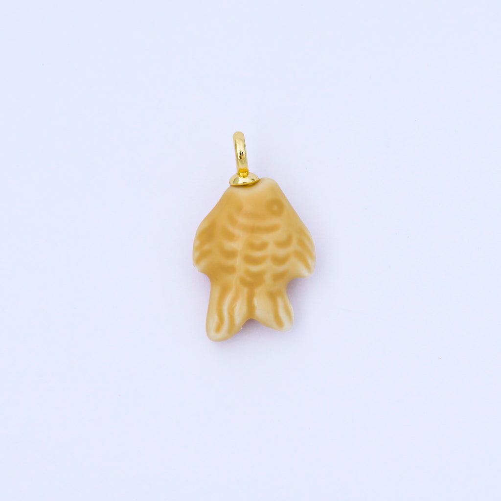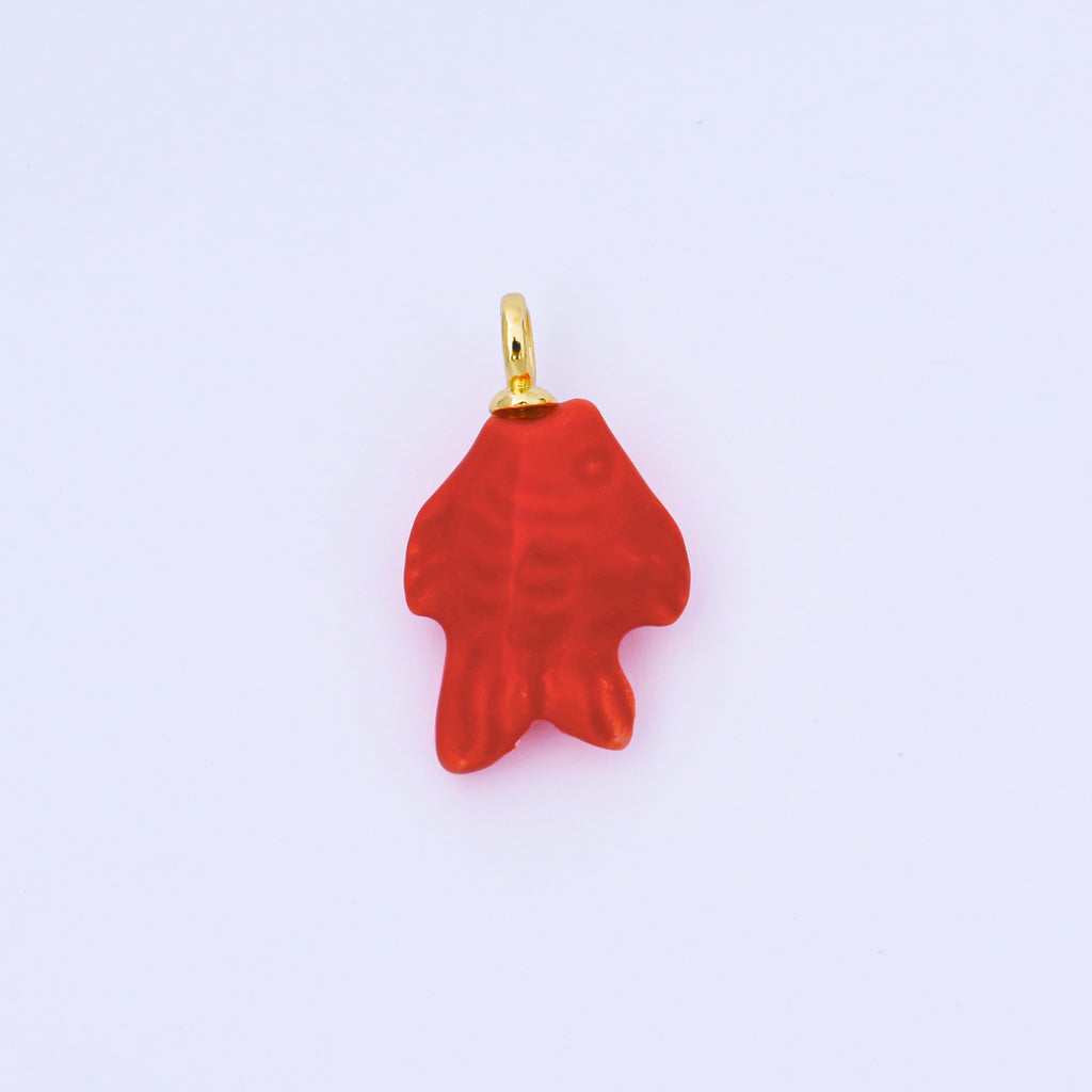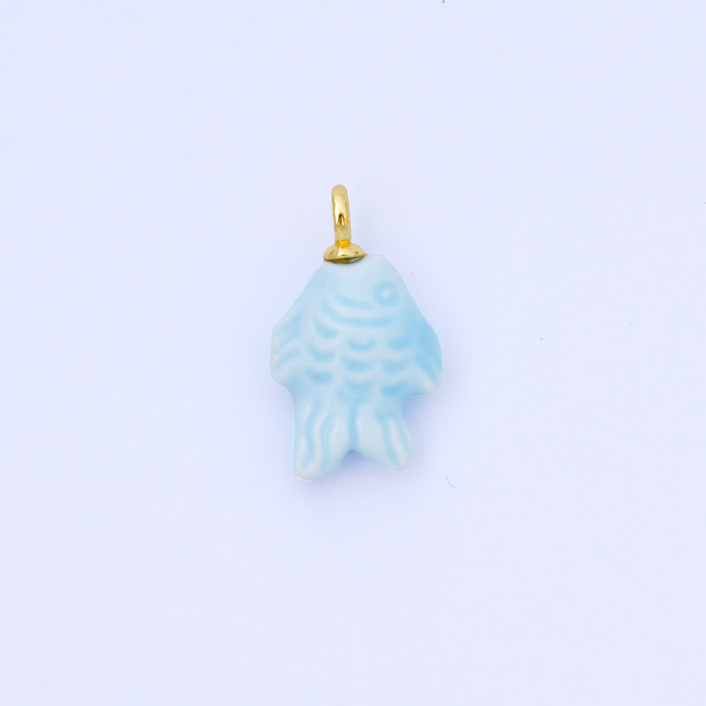 24K Gold Filled 25mm Orange, Red, Yellow, Blue, Green, Teal Fish Ceramic Porcelain Drop Charm | C960 - C963