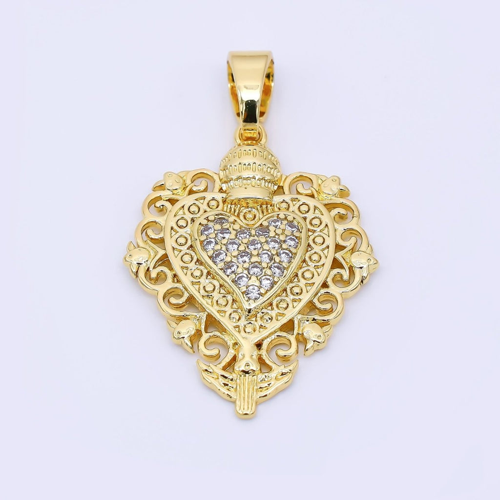 24K Gold Filled 26mm Micro Paved CZ Elegant Royal Heart Pendant | AH-542