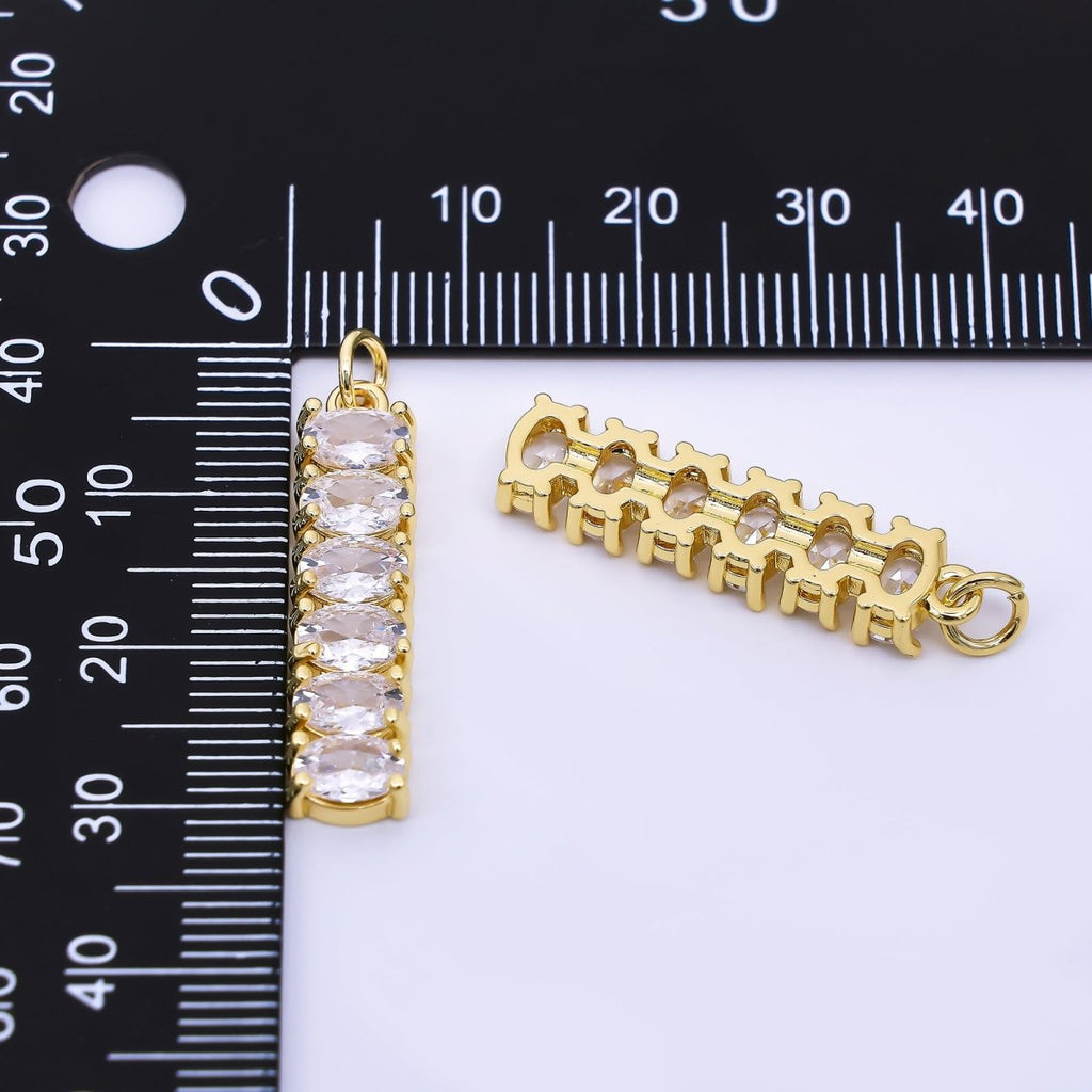 24K Gold Filled 28mm 6 Marquise-Ladder CZ Stacked Charm | AJ-501