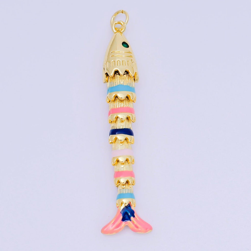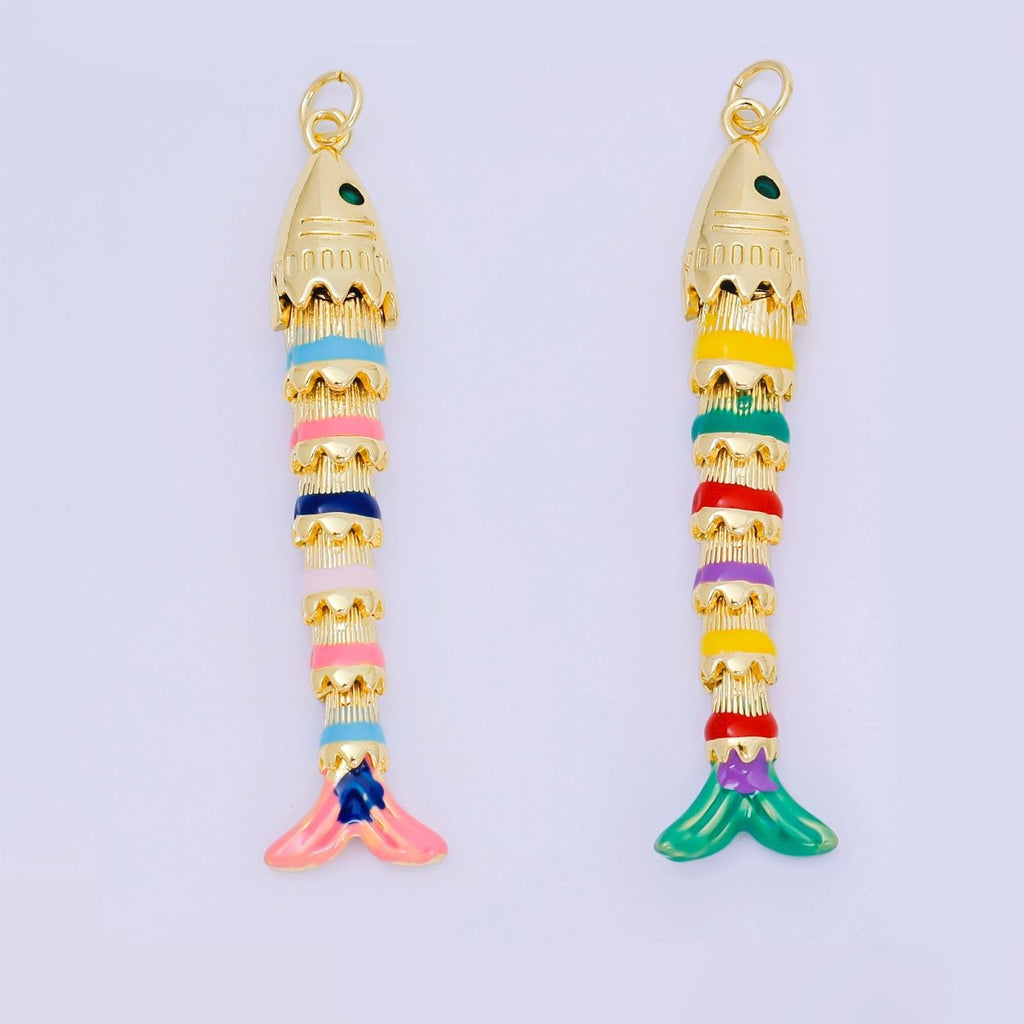24K Gold Filled 33mm Emerald Green CZ Enamel Art Rainbow Fish Animal Charm | D-080 D-081