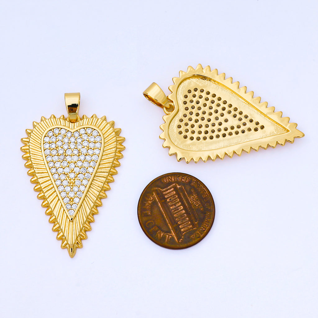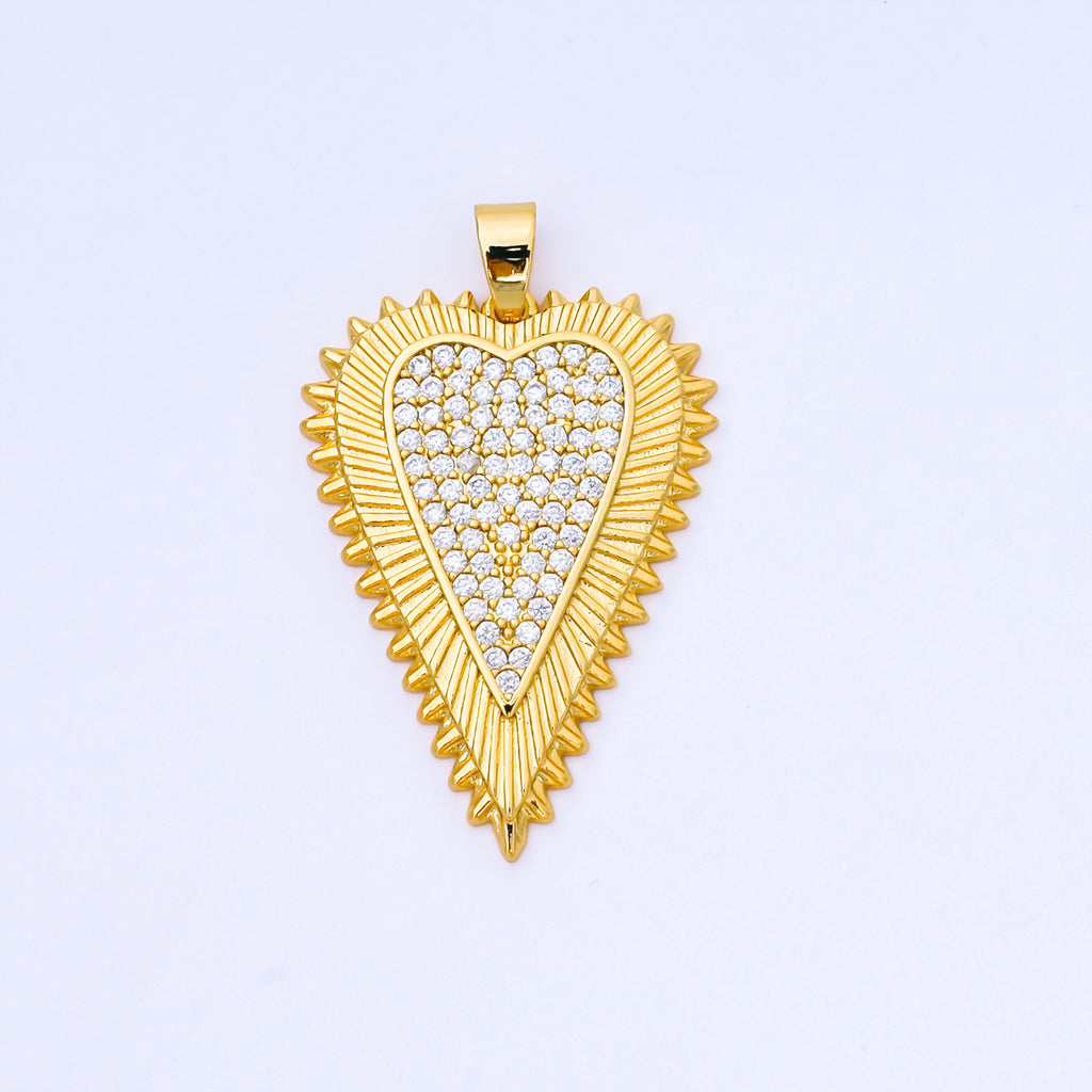 24K Gold Filled 36mm Micro Paved CZ Ribbed Teeth Outline Heart Pendant | AA1662