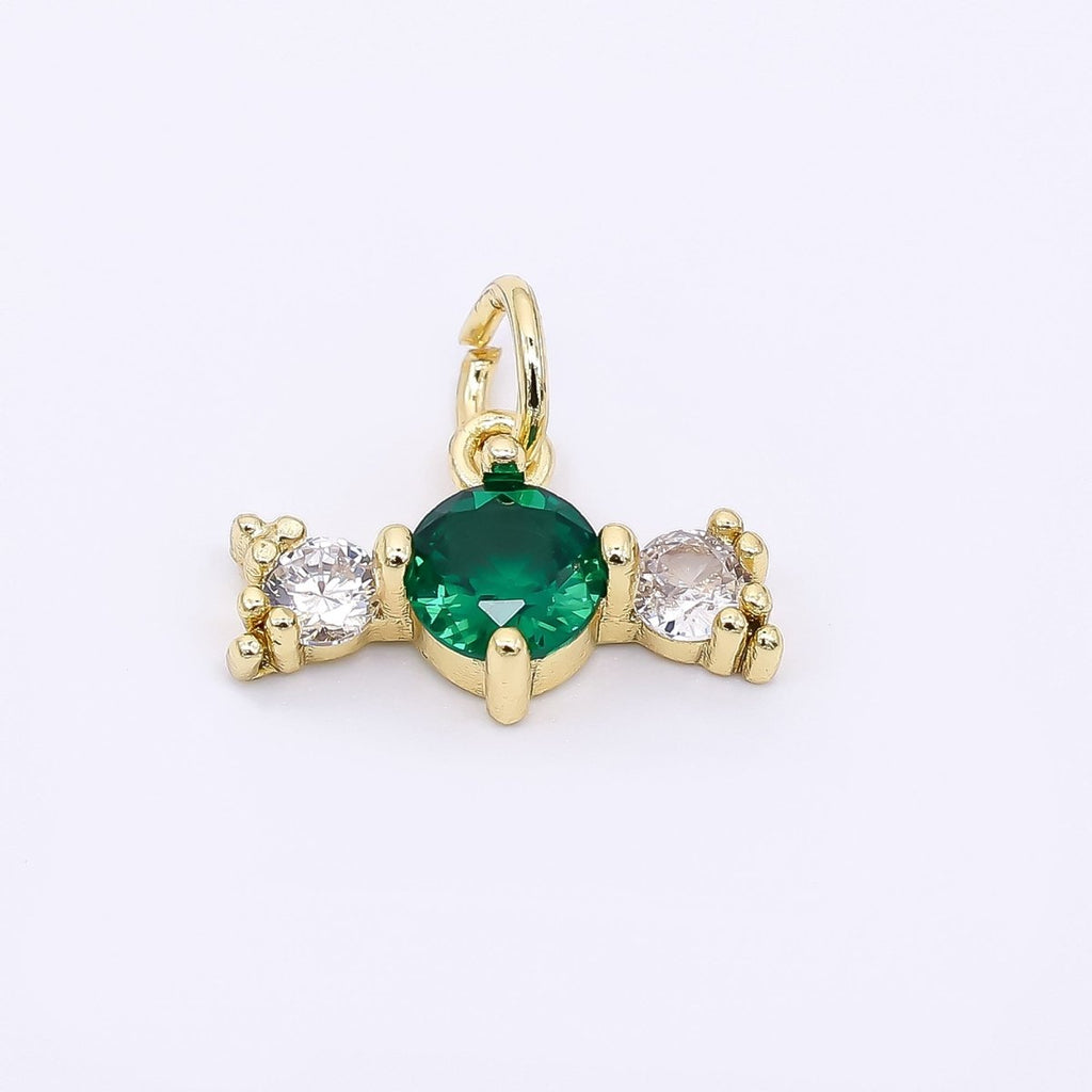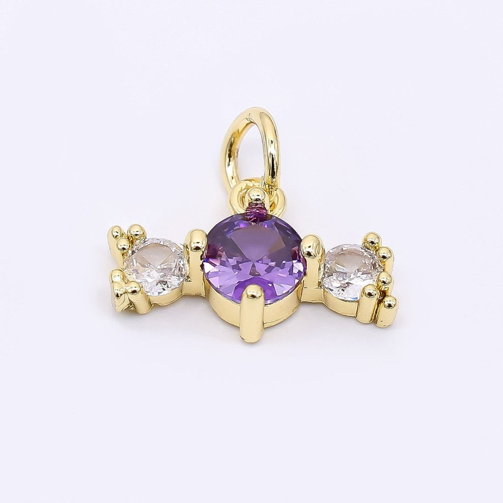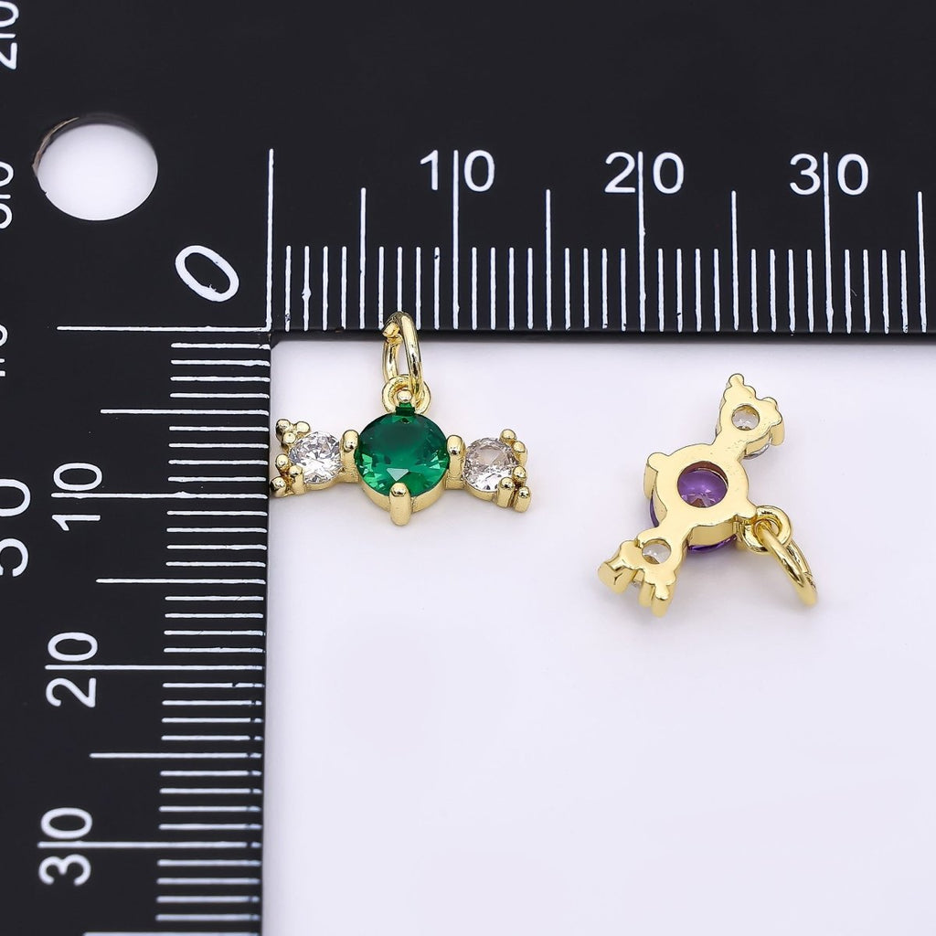 24K Gold Filled 9mm Royal Blue, Green, & Purple Round Clear Candy Bar CZ Charm | AJ-502