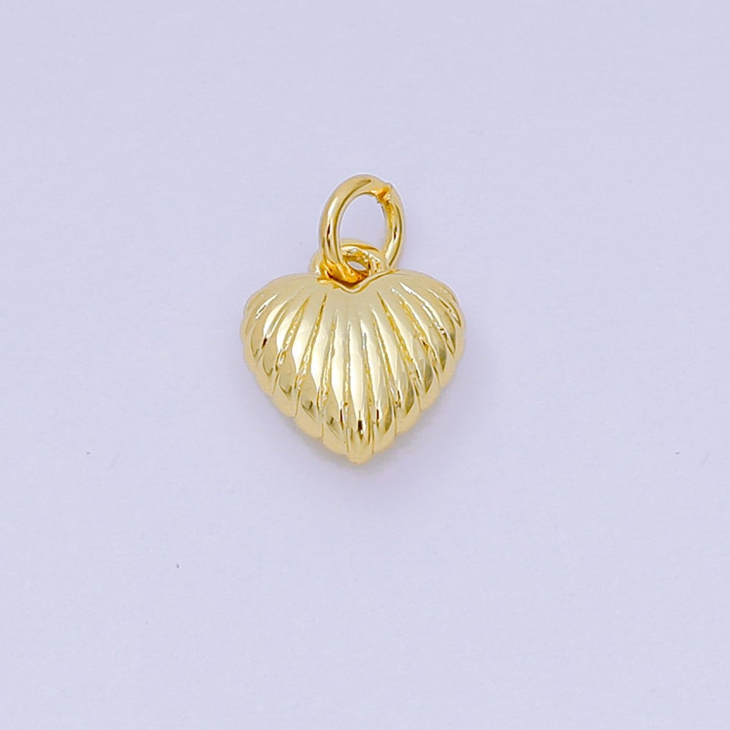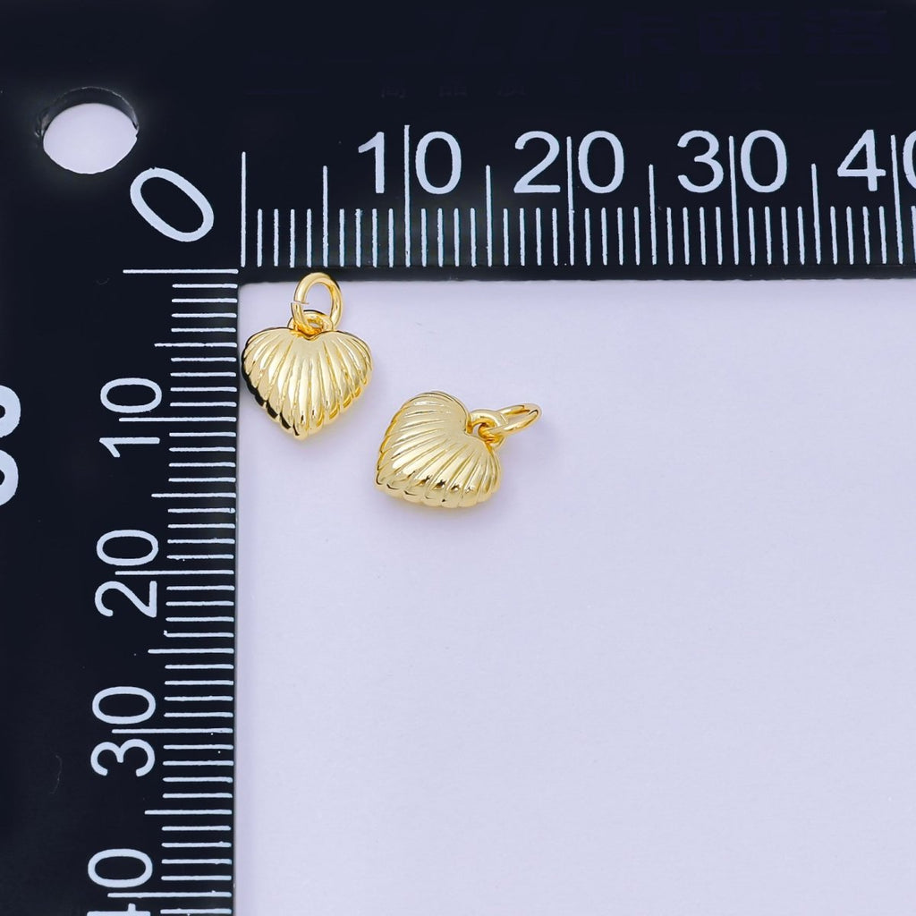 24K Gold Filled 9mm Ribbed Line-Textured Puffy Heart Charm | D124