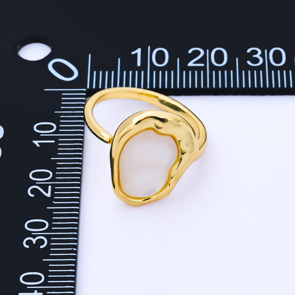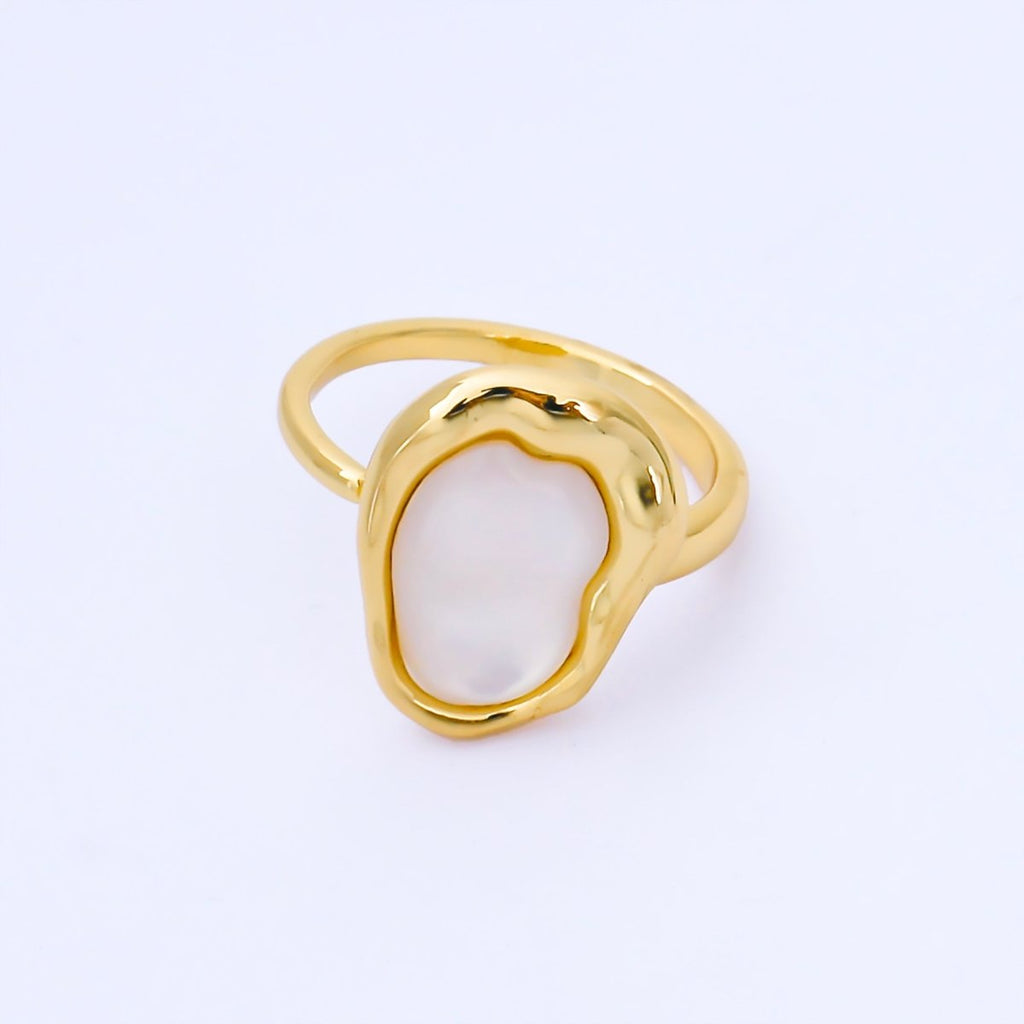 24K Gold Filled Shell Pearl Molten Bezel Solitaire Adjustable Ring | O1667